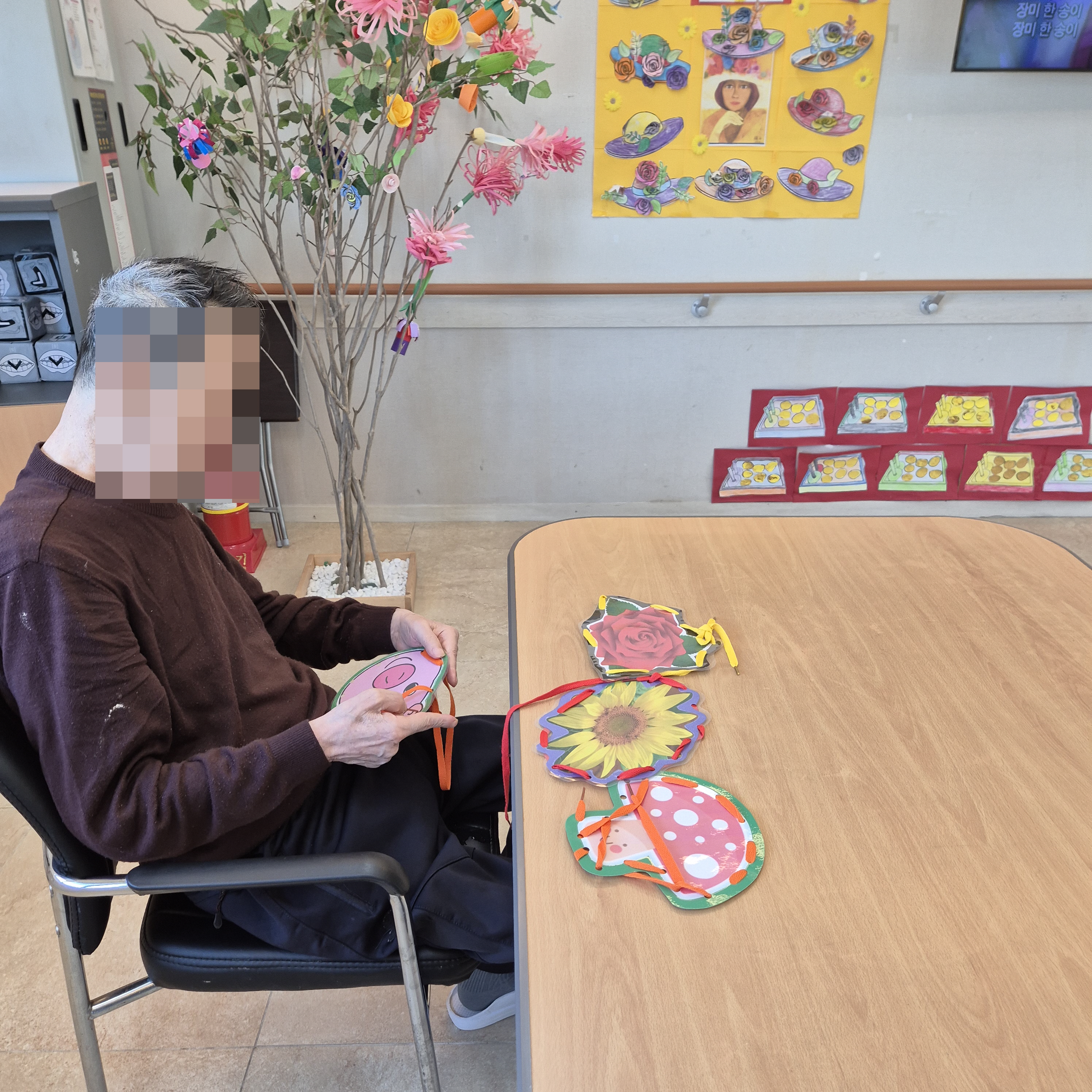 ⚬ 4월 15일 화요일_ 호기심의 날 ⚬ 관리자 2025-04-15 17:06 오전프로그램 : 끈끼우기 (여가).목표: 손가락 소근육을 사용하여 치매예방.기대효과: 집중력, 인지력, 협응력, 추리력, 기억력, 성취감, 사회성발달, 공간지각능력.오후프로그램 : 외부강사 –(인지)목표: 인지향상에 도움을 주고받으며 원하는 작품을 완성할때 성취감을 준다.기대효과: 소근육발달과 작품의 완성함을 보며 성취감을 느끼며 만족감을 형성한다. 다음글 ⚬ 4월 16일 수요일_ 창의성의 날 ⚬ 이전글 ⚬ 4월 14일 월요일_ 자기존중의 날 ⚬ 목록