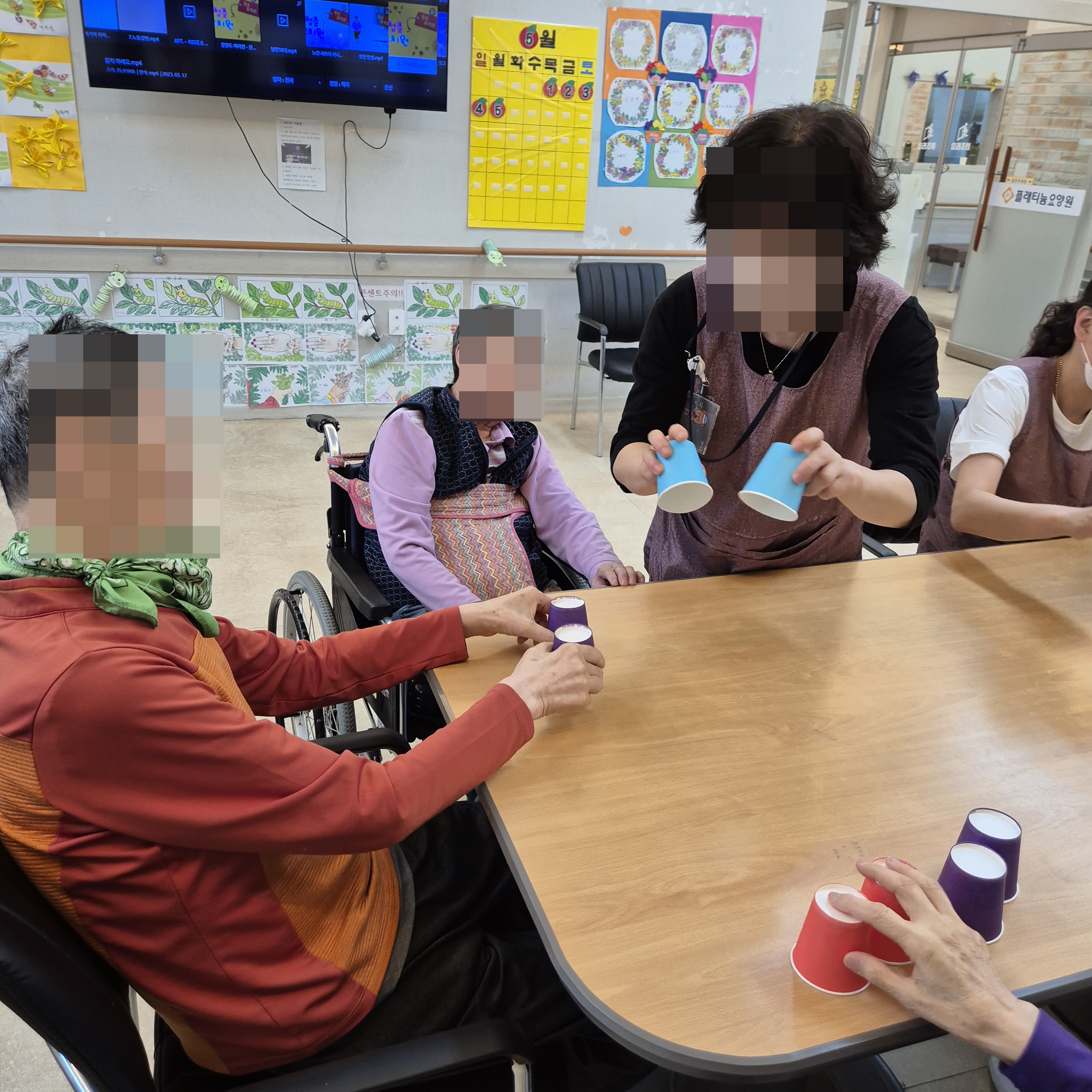 ⚬ 5월 5일 월요일_ 자기존중의 날 ⚬ 관리자 2025-05-05 17:04 오전프로그램 : 외부강사 – (인지)목표: 인지향상에 도움을 주고받으며 원하는 작품을 완성할때 성취감을 준다.기대효과: 소근육발달과 작품의 완성함을 보며 성취감을 느끼며 만족감을 형성한다.오후프로그램 : 놀이 운동(신체)목표: 주의 집중력, 언어 및 언어 관련 능력을 향상한다. 규칙을 알고 숙지한다. 놀이의 즐거움을 안다.기대효과: 놀이를 통해 주의 집중력과 언어 능력을 향상한다. 규칙의 중요성을 알고 요령 파악으로 즐거움을 안다. 다음글 ⚬ 5월 6일 화요일_ 호기심의 날 ⚬ 이전글 ⚬ 5월 2일 금요일_ 여가지원의 날 ⚬ 목록