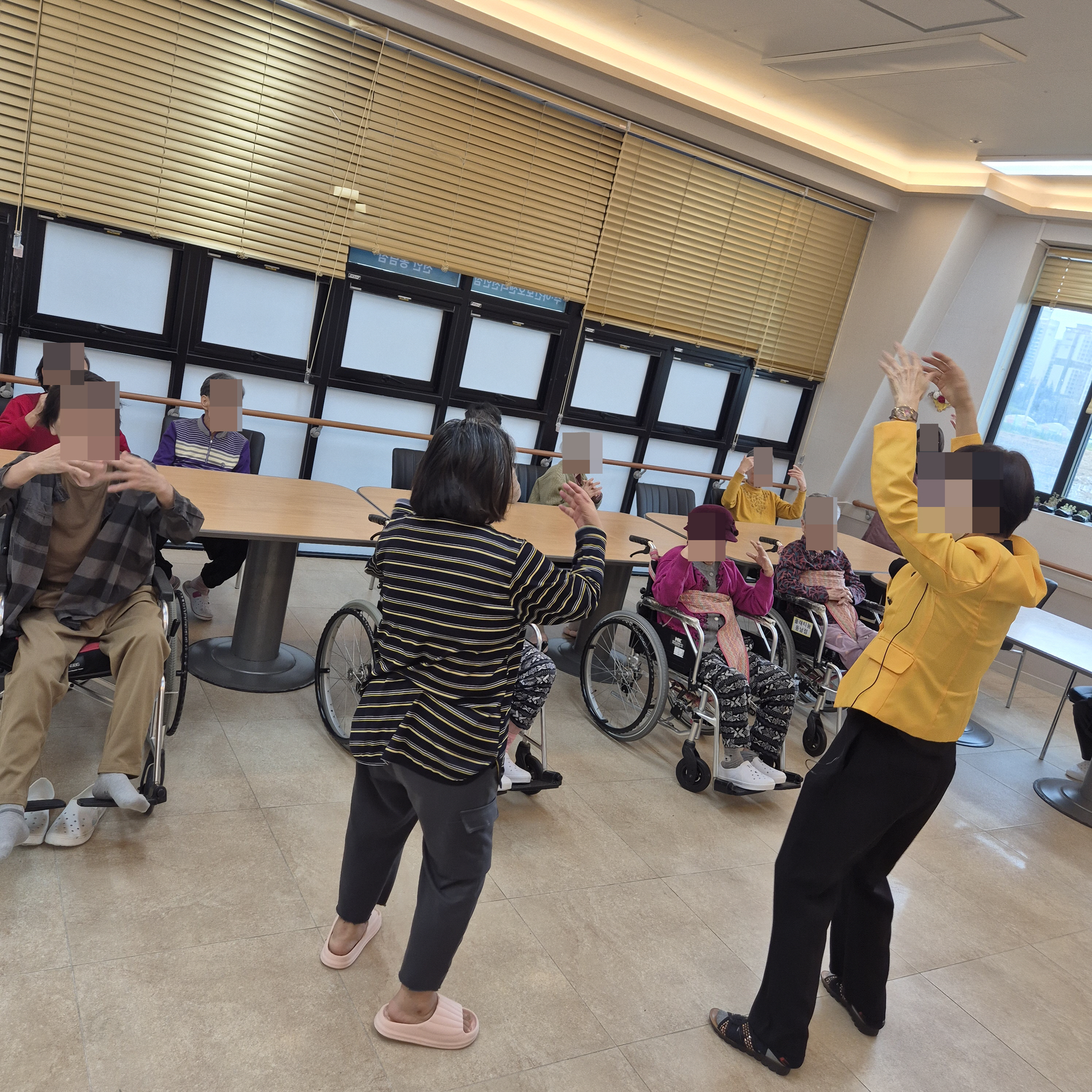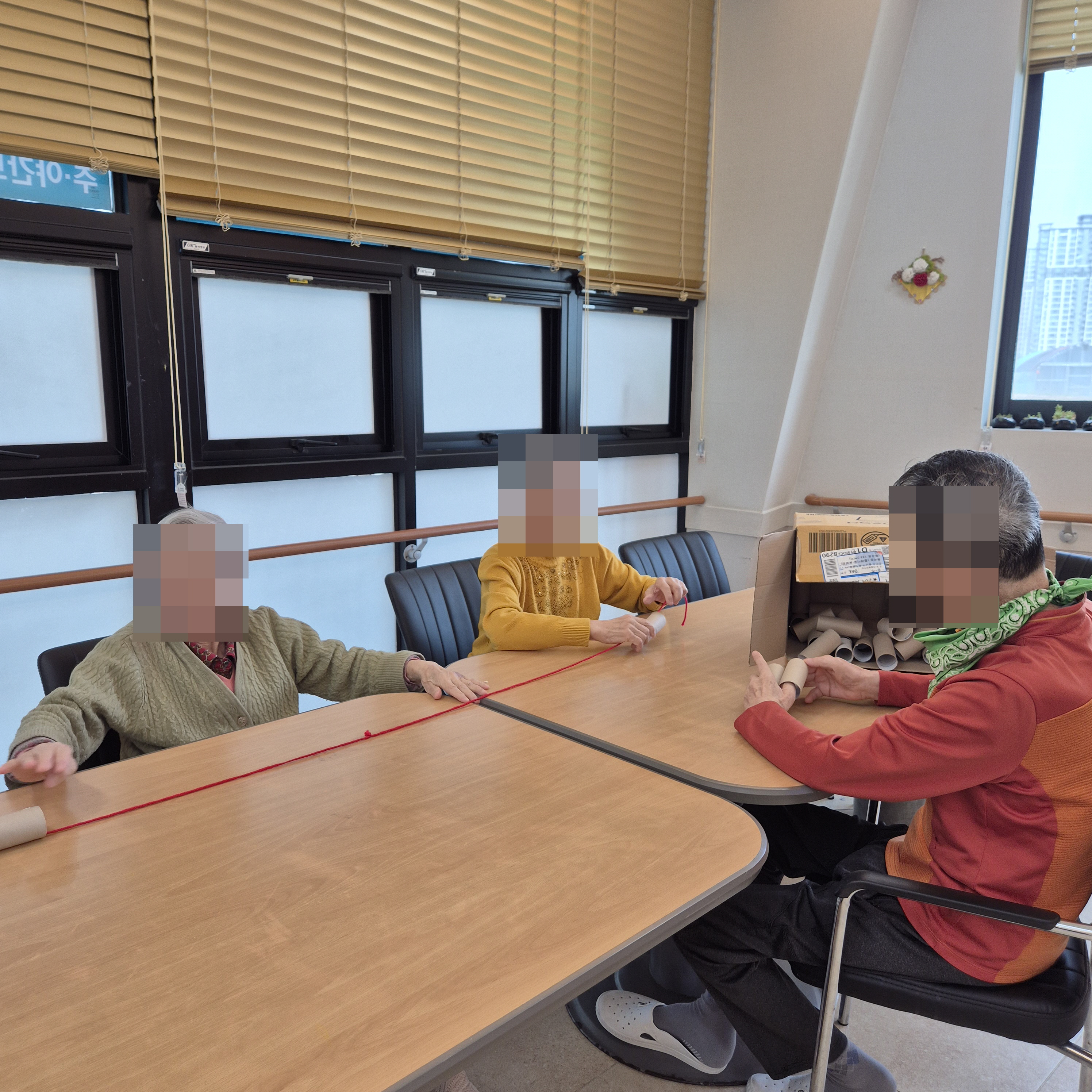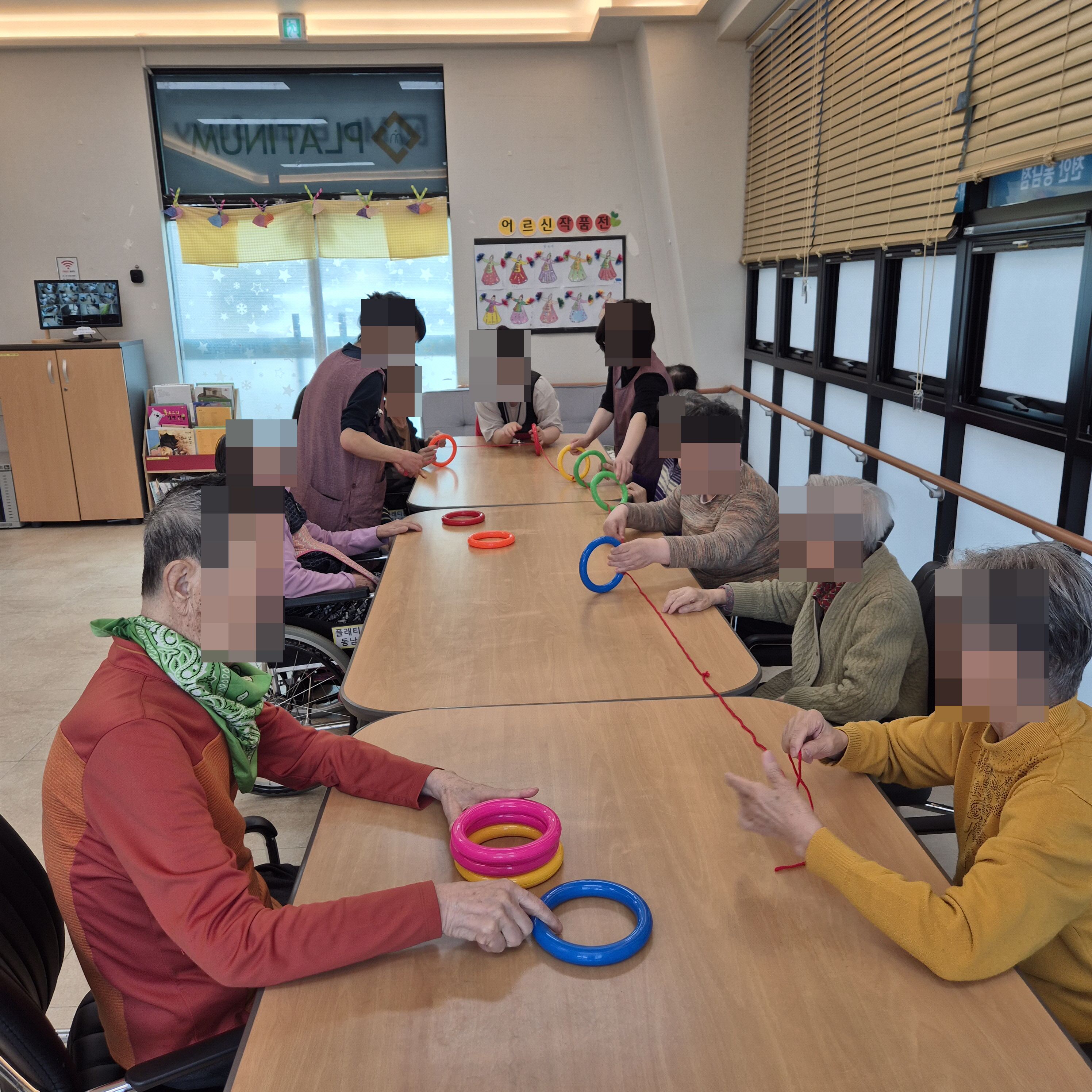 ⚬ 5월 6일 화요일_ 호기심의 날 ⚬ 관리자 2025-05-06 17:02 오전프로그램 : 고리 전달하기(여가)목표: 손으로 줄을 잡는 작업을 통해 소 근육을 발달 시킬 수 있다. 고리를 전달하며 전달 행동을 통해 타인에 대한 배려심을 키울 수 있다. 사회성 발달과 신체 조절 능력을 기를 수 있다.기대효과: 집중력, 인지력, 협응력, 추리력, 기억력, 성취감, 사회성 발달, 공간 지각 능력 향상.오후프로그램 : 외부강사 – (인지)목표: 인지향상에 도움을 주고받으며 원하는 작품을 완성할때 성취감을 준다.기대효과: 소근육발달과 작품의 완성함을 보며 성취감을 느끼며 만족감을 형성한다. 다음글 ⚬ 5월 7일 수요일_ 창의성의 날 ⚬ 이전글 ⚬ 5월 5일 월요일_ 자기존중의 날 ⚬ 목록