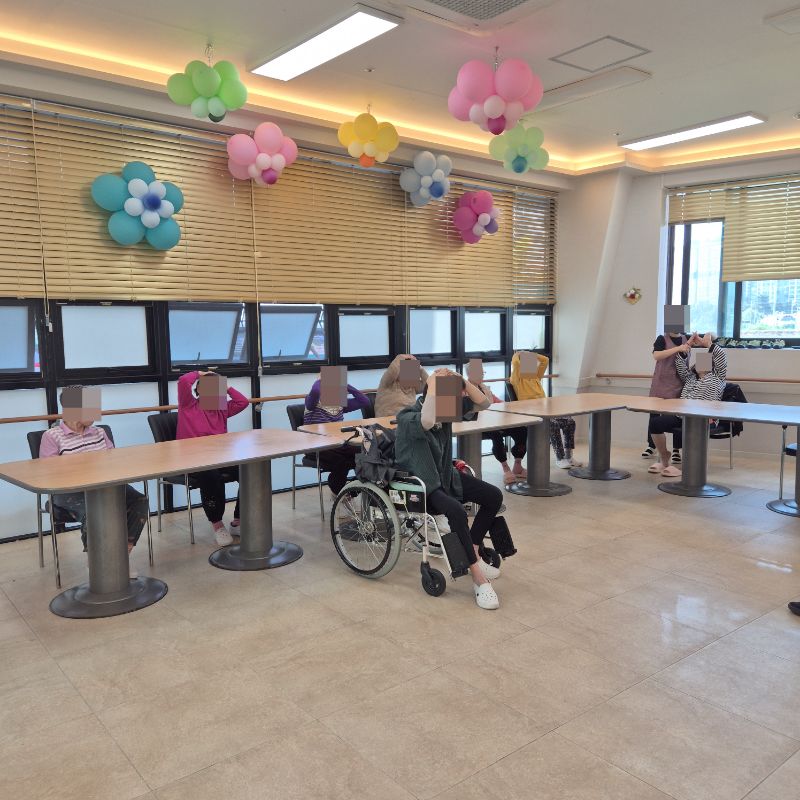 ⚬ 5월 12일 월요일_ 자기존중의 날 ⚬ 관리자 2025-05-12 17:09 오전프로그램 : 외부강사 – (인지)목표: 인지향상에 도움을 주고받으며 원하는 작품을 완성할때 성취감을 준다.기대효과: 소근육발달과 작품의 완성함을 보며 성취감을 느끼며 만족감을 형성한다.오후프로그램 : 자세 변경(신체)목표: 욕창 및 관절 경직 예방.혈액순환 개선과 근육 긴장 완화.신체 정렬을 유지하여 통증 완화 및 편안함 제공. 심리적 안정 및 긍정적인 정서 유발.기대효과: 압력 부하를 감소시켜 피부 건강 유지.관절 경직 예방과 유연성 유지. 정체된 혈액 흐름 개선으로 건강 유지. 자세 변화를 통해 근육과 신경의 부담 경감. 편안한 환경과 신체 정렬로 심리적 안도감 제공. 다음글 ⚬ 5월 13일 화요일_ 호기심의 날 ⚬ 이전글 ⚬ 5월 9일 금요일_ 여가지원의 날 ⚬ 목록