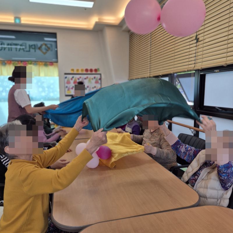 ⚬ 5월 13일 화요일_ 호기심의 날 ⚬ 관리자 2025-05-13 17:03 오전프로그램 : 풍선 전달하기(여가).목표: 손으로 보자기를 잡는 작업을 통해 소 근육을 발달 시킬 수 있다. 풍선을 전달하며 전달 행동을 통해 타인에 대한 배려심을 키울 수 있다. 사회성 발달과 신체 조절 능력을 기를 수 있다.기대효과: 풍선의 탄력성, 집중력, 인지력, 협응력, 기억력, 성취감, 사회성 발달, 공간 지각 능력 향상.오후프로그램 : 외부강사 – (인지)목표: 인지향상에 도움을 주고받으며 원하는 작품을 완성할때 성취감을 준다.기대효과: 소근육발달과 작품의 완성함을 보며 성취감을 느끼며 만족감을 형성한다. 다음글 ⚬ 5월 14일 수요일_ 창의성의 날 ⚬ 이전글 ⚬ 5월 12일 월요일_ 자기존중의 날 ⚬ 목록