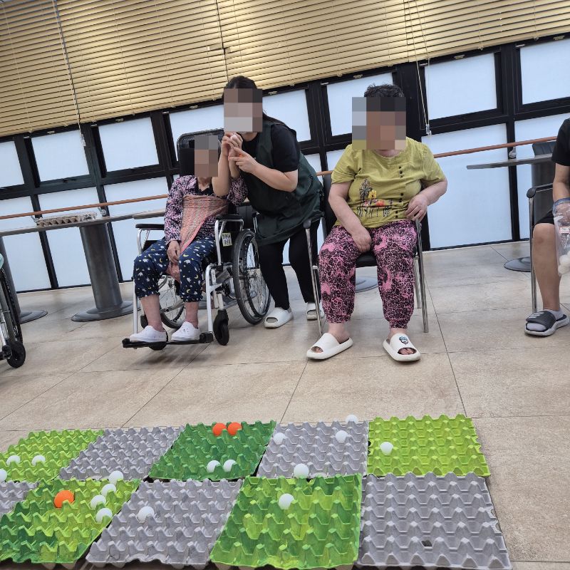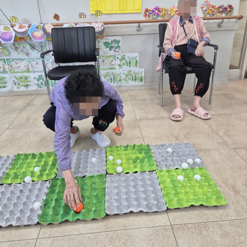 ⚬ 7월 22일 화요일_ 호기심의 날 ⚬ 관리자 2025-07-22 17:09 오전프로그램 : 계란판 탁구공 던지기(여가)목표: 손으로 탁구공을 잡고 계란 판에 던지는 작업을 통해 대,소 근육을 발달 시킬 수 있다.조준력과 신체 조절 능력을 기를 수 있다.기대효과: 조절능력, 집중력, 인지력, 협응력, 추리력, 기억력, 성취감, 공간 지각 능력 향상한다.오후프로그램 : 외부강사 – (인지)목표: 인지향상에 도움을 주고며 원하는 작품을 완성할때 성취감을 준다. 재료의 내용과 사용방법의 변화 알아본다.기대효과: 새로운 소재의 재료로 창의력을 증진한고 완성된 작품을 보며 성취감을 느껴 만족감 형성 한다. 다음글 ⚬ 7월 23일 수요일_ 창의성의 날 ⚬ 이전글 ⚬ 7월 21일 월요일_ 자기존중의 날 ⚬ 목록