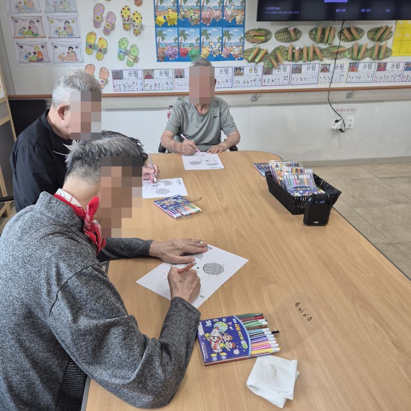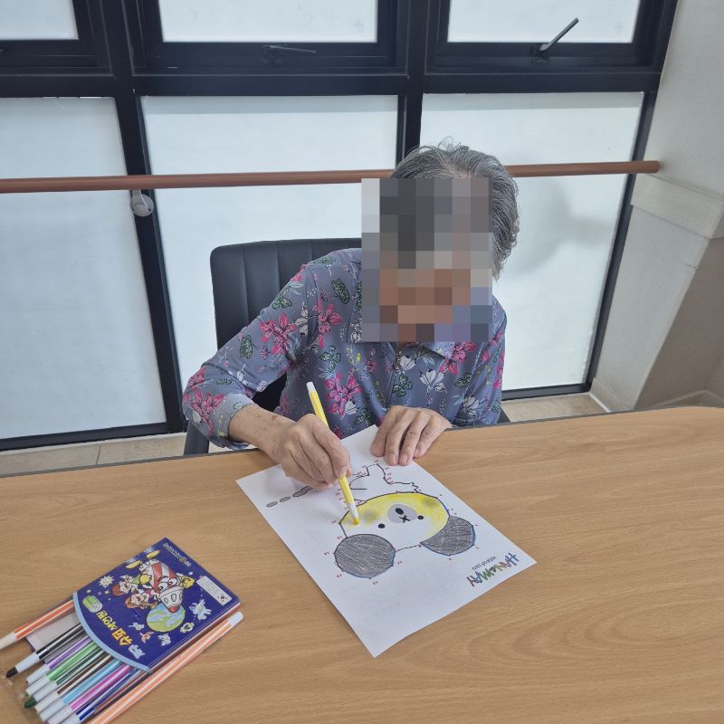 ⚬ 8월 13일 수요일_ 창의성의 날 ⚬ 관리자 2025-08-13 17:11 오전프로그램 : 외부강사- 레크레이션 (여가)목표: 레크레이션을 통해 어르신들의 신체활동을 향상한다 .기대효과: 몸을 움직이며 대∙소근육과 신진대사에 도움을 준다.오후프로그램 : 숫자 잇기(인지)목표: 숫자를 기억하며 선긋기를 통해 집중력을 향상시킨다. 손 운동으로 소근육기능 유지를 향상시킨다. 점선을 이어 그림을 완성함으로 성취감을 느낄 수 있다.기대효과: 숫자 기억과 집중력을 향상한다. 성취감 형성한다. 다음글 ⚬ 8월 15일 금요일_ 여가지원의 날 ⚬ 이전글 ⚬ 8월 12일 화요일_ 호기심의 날 ⚬ 목록