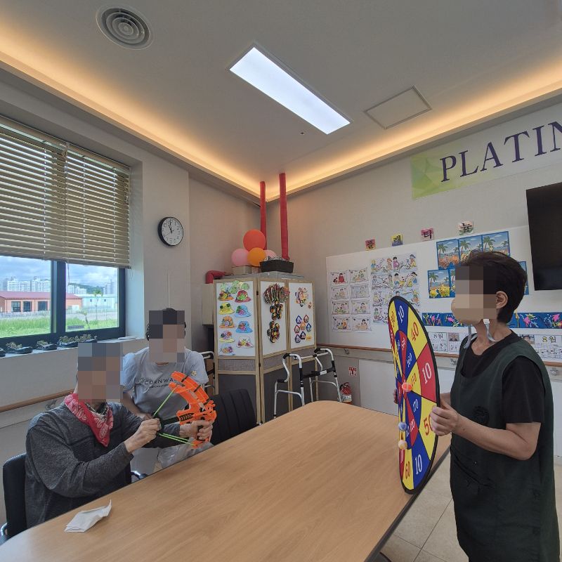 ⚬ 8월 20일 수요일_ 창의성의 날 ⚬ 관리자 2025-08-20 17:19 오전프로그램 : 외부강사- 레크레이션 (여가)목표: 레크레이션을 통해 어르신들의 신체활동을 향상한다 .기대효과: 몸을 움직이며 대∙소근육과 신진대사에 도움을 준다.오후프로그램 : 동화책 읽기(인지)목표: 무료한 시간 이야기로 생활의 활력을 되찾고 상상력을 자극하여 치매 예방의 효과도 있기를 기대한다.기대효과: 과거를 회상하고 집중력을 높여 인지를 자극시킨다. 정서적 안정감과 행복감을 향상에 도움이 된다. 기억력 증진에 도움이 된다. 다음글 ⚬ 8월 22일 금요일_ 여가지원의 날 ⚬ 이전글 ⚬ 8월 19일 화요일_ 호기심의 날 ⚬ 목록