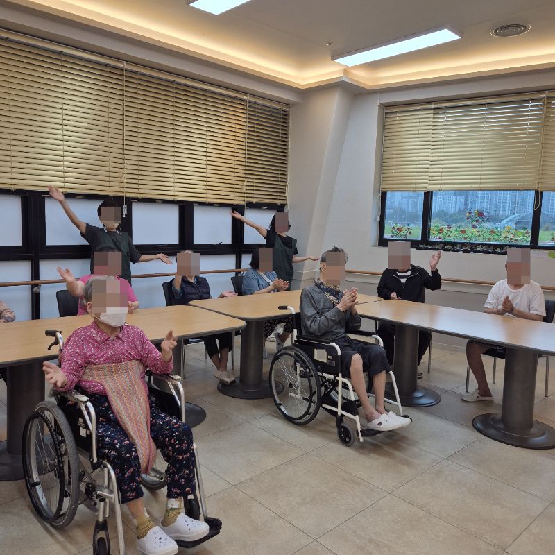 ⚬ 9월 1일 월요일_ 자기존중의 날 ⚬ 관리자 2025-09-01 17:40 오전프로그램 : 외부강사 – (인지)목표: 인지향상에 도움을 주고받으며 원하는 작품을 완성할때 성취감을 준다.기대효과: 소근육발달과 작품의 완성함을 보며 성취감을 느끼며 만족감을 형성한다.오후프로그램 : 국민 체조(신체)목표: 전신 근육의 균형 있는 사용으로 신체 건강 유지, 유연성 및 근력을 강화하여 일상생활 동작 수행 능력 향상, 심폐 기능 개선과 혈액순환 촉진, 규칙적인 운동 습관 형성 및 정서적 안정을 도모한다.기대효과: 관절 가동 범위와 균형감각이 개선되어 일상생활에서의 움직임이 원활해짐. 음악과 함께하는 국민체조는 재미와 동기부여를 제공하여 심리적 만족감을 높인다. 다음글 ⚬ 9월 2일 화요일_ 호기심의 날 ⚬ 이전글 ⚬ 8월 27일 수요일_ 창의성의 날 ⚬ 목록