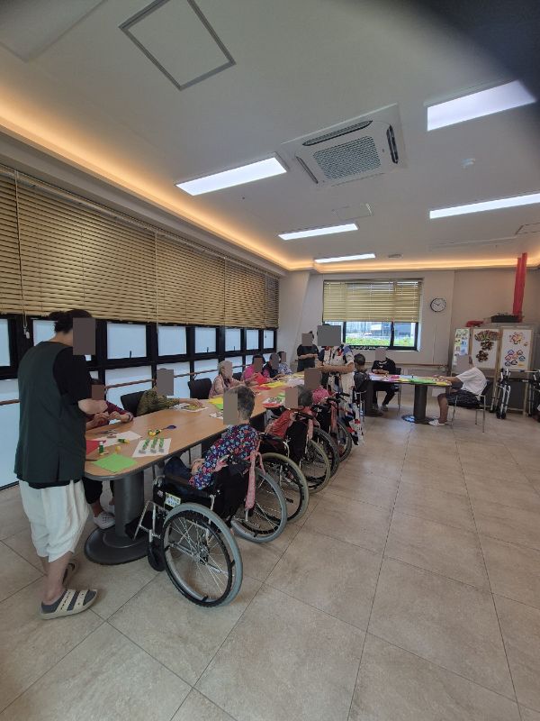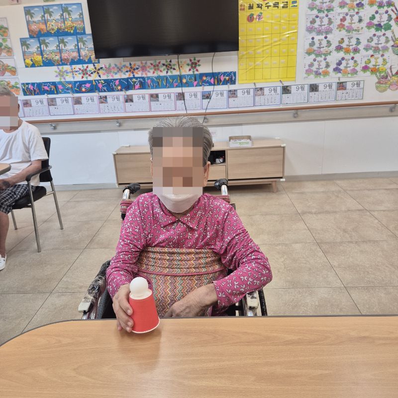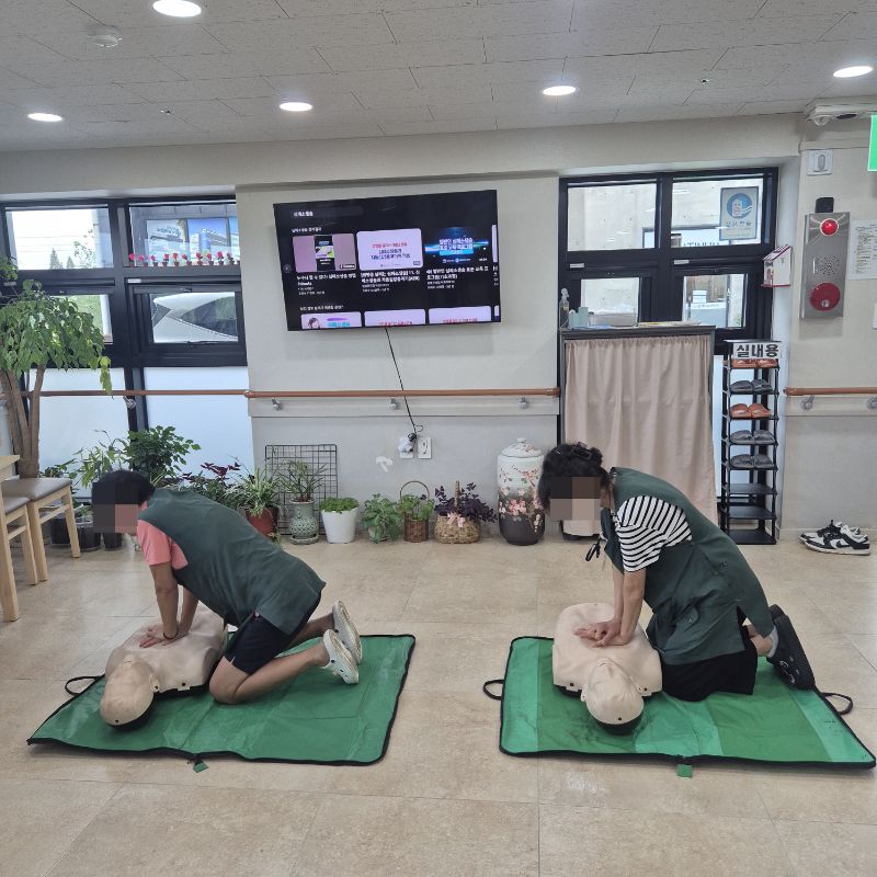⚬ 9월 2일 화요일_ 호기심의 날 ⚬ 관리자 2025-09-02 17:43 CPR교육 : 대상자의 어깨를 두드린 후 코에다 손을 갖다 대고 의식확인을 한다. 대상자가 의식이 없는 것을 확인후 119에 전화를요청하고 제세동기를 요청한다. 대상자의 심장위치에 대고 손을 깍지를 낀 후 의식을 확인하면서 심폐소생술을 진행한다. 119가 올 때까지 진행한다. 어르신들께서 안전한 요양원 생활을 하시게 준비하였습니다.오전프로그램 : 컵 공기놀이(여가)목표: 손으로 탁구공이 올려진 컵을 뒤집는 동작을 하며 대,소 근육을 발달 시킬 수 있다. 조준력과 신체 조절 능력을 기를 수 있다.기대효과: 조절능력, 집중력, 인지력, 협응력, 추리력, 기억력, 성취감, 공간 지각 능력 향상한다.오후프로그램 : 외부강사 – (인지)목표: 인지향상에 도움을 주고며 원하는 작품을 완성할때 성취감을 준다. 재료의 내용과 사용방법의 변화 알아 본다.기대효과: 새로운 소재의 재료로 창의력을 증진한고 완성된 작품을 보며 성취감을 느껴 만족감 형성 한다. 다음글 ⚬ 9월 3일 수요일_ 창의성의 날 ⚬ 이전글 ⚬ 9월 1일 월요일_ 자기존중의 날 ⚬ 목록