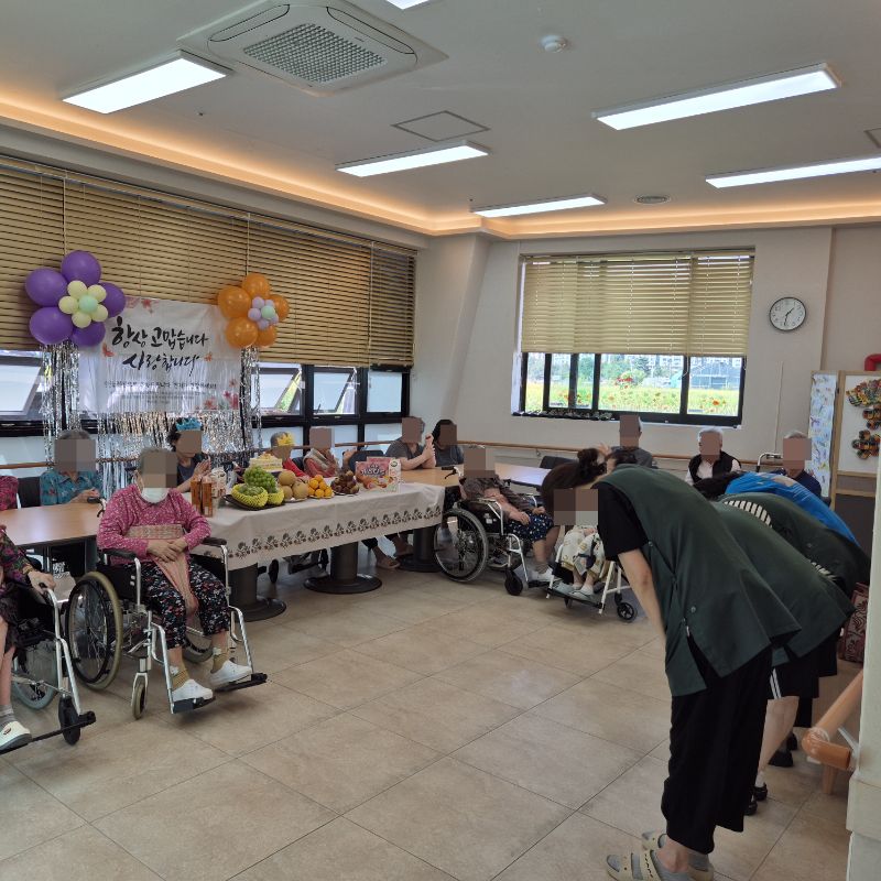 ⚬ 9월 23일 화요일_ 호기심의 날 ⚬ 관리자 2025-09-23 17:45 오전프로그램 : 고리 던지기(여가)목표: 소근육 증진과 사회성 발달및 신체 조절능력을 기를수 있다. 신체를 움직이며 기분전환을 할수 있다. 타인과 사회성을 증진할수 있다.기대효과: 소근육 증진, 사회성 발달, 신체 조절능력 향상, 기분전환 효과를 기대한다.오후프로그램 : 외부강사 – (인지)목표: 인지향상에 도움을 주고며 원하는 작품을 완성할때 성취감을 준다. 재료의 내용과 사용방법의 변화 알아본다.기대효과: 새로운 소재의 재료로 창의력을 증진한고 완성된 작품을 보며 성취감을 느껴 만족감 형성 한다.생신잔치 : 박0순어르신,구0교어르신생신잔치를 열어 어르신들께 건강하게 오래오래 사시자고 축하 인사를 드리고 축가를 불러드렸습니다.보내주신 간식을 나눠 드시고 다 못드신 간식은 두구두고 나눠 드시자고 약속하셨습니다.매일매일이 잔칫날인 오늘만 같았으면 좋겠습니다. 생신축하드립니다.~ 건강하세요.~~ 다음글 ⚬ 9월 24일 수요일_ 창의성의 날 ⚬ 이전글 ⚬ 9월 19일 금요일_ 여가지원의 날 ⚬ 목록