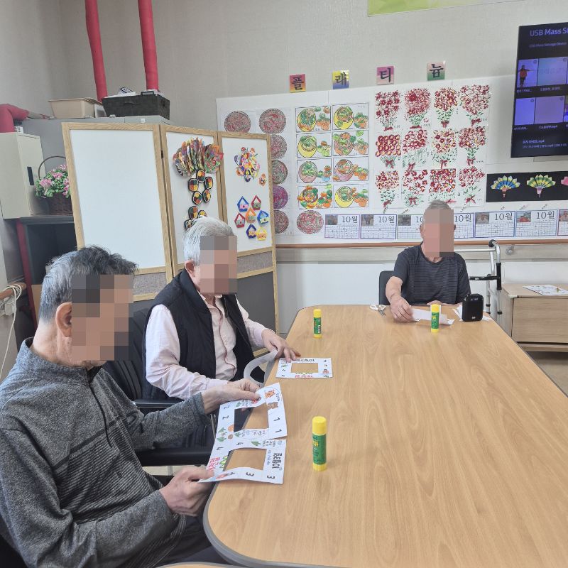 ⚬ 10월 1일 수요일_ 창의성의 날 ⚬ 관리자 2025-10-01 17:36 오전프로그램 : 외부강사- 레크레이션 (여가)목표: 레크레이션을 통해 어르신들의 신체활동을 향상 한다 .기대효과: 몸을 움직이며 대∙소근육과 신진대사에 도움을 준다.오후프로그램 : 도안을 이용한 꾸미기(인지)목표: 순서를 기억함으로써 기억력향상에 도움이 되고, 종이 접는 힘을 이용하여 소근육을 발달시킨다. 집중력을 강화할수있다.기대효과: 함께 모여서 활동하면서 어르신들의 친밀감 형성 및 대인관계 능력을 향상시킨다. 다음글 ⚬ 10월 3일 금요일_ 여가지원의 날 ⚬ 이전글 ⚬ 9월 30일 화요일_ 호기심의 날 ⚬ 목록
