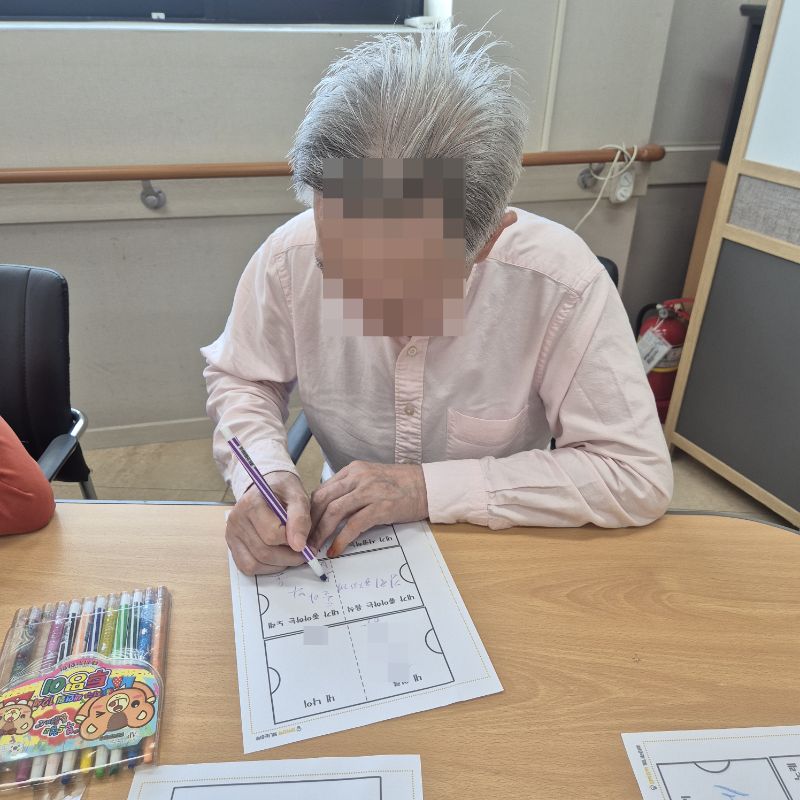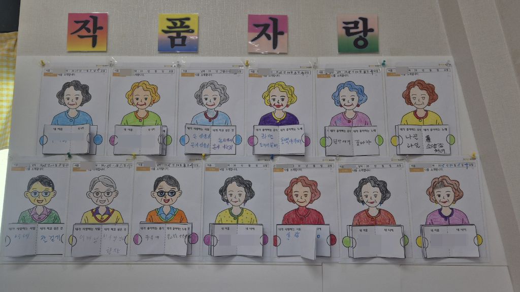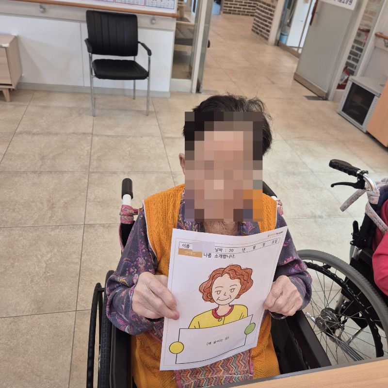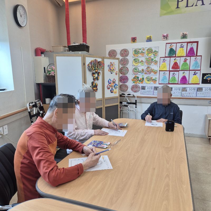 ⚬ 10월 8일 수요일_ 창의성의 날 ⚬ 관리자 2025-10-08 17:25 오전프로그램 : 여러 도안 색칠하기(인지)목표: 다양한 미술재료와 도구를 활용하여 자신의 생각과 느낌을 자유롭게 표현함으로써 정서적 안정감을 느낀다.기대효과: 손을 움직이며 색을 칠해봄으로써 소 근육을 발달 시킬 수 있다. 도안에서 색을 벗아나지 않게 집중해 집중력을 향상 시킬 수 있다. 오후프로그램 : 자랑스런 내이름(인지)목표: 이름에 대한 자랑스러움과 인지 향상에 도움을 주고 손 힘을 키우며 원하는 작품을 완성할 때 성취감을 느낀다.기대효과: 나의 이름을 자랑스럽게 생각하며 긍정적인 마음을 갖게한다. 소근육을 증진하고 여러가지 색감으로 기분전환을 한다. 작품을 완성하며 성취감을 느낀다. 다음글 ⚬ 10월 10일 금요일_ 여가지원의 날 ⚬ 이전글 ⚬ 10월 7일 화요일_ 호기심의 날 ⚬ 목록
