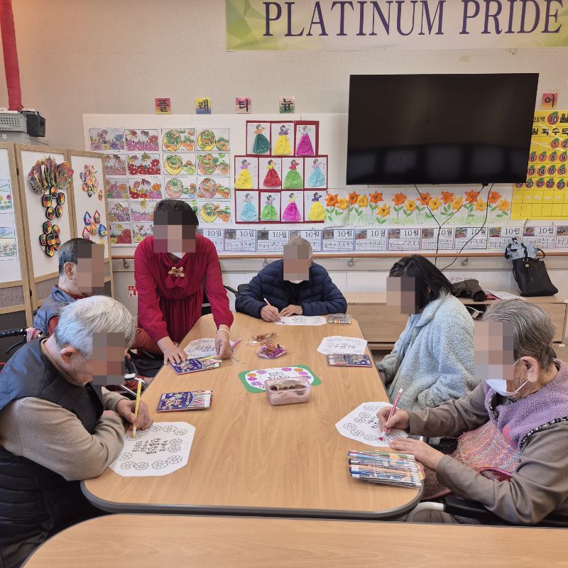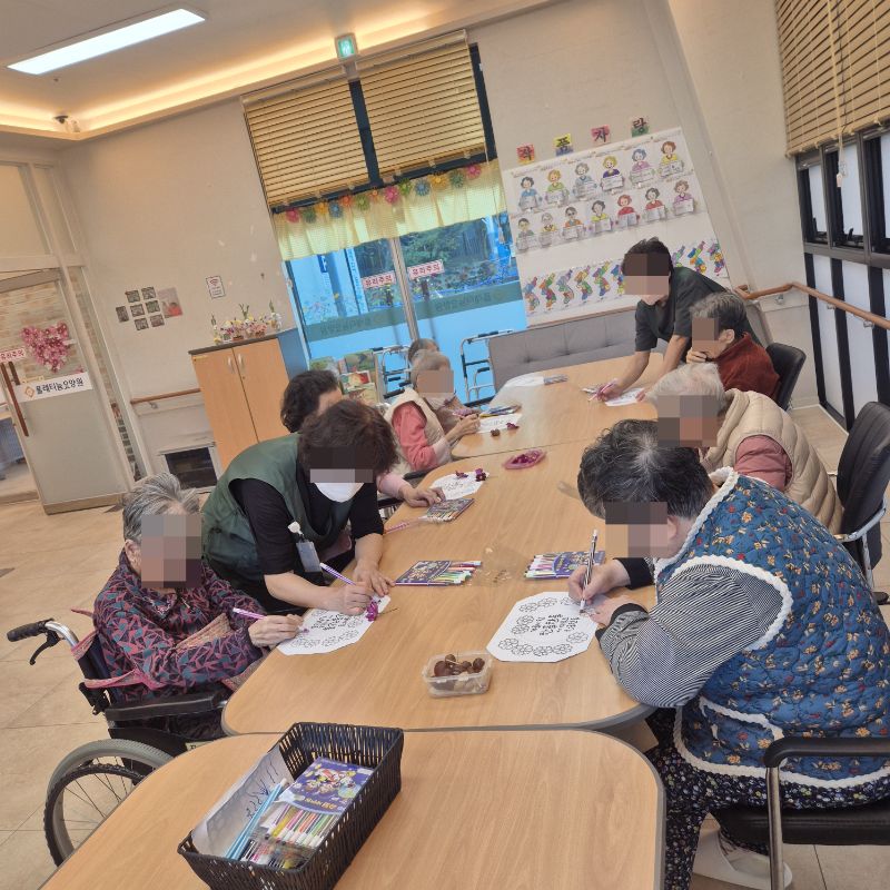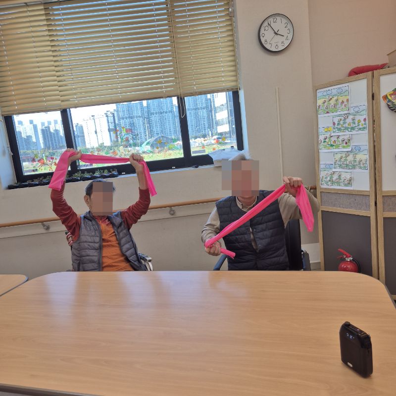 ⚬ 10월 24일 금요일_ 여가지원의 날 ⚬ 관리자 2025-10-24 17:20 오전프로그램 : 외부강사 – (인지)목표: 인지향상에 도움을 주고며 원하는 작품을 완성할때 성취감을 준다. 계절에 맞는 재료의 내용을 살펴 보고 경험담을 이야기 나눠 본다.기대효과: 계절에 맞는 재료를 사용하여 계절의 변화에 적응할수 있다. 경험담을 이야기하며 자신감을 갖는다.오후프로그램 : 밴드 스트레칭(신체)목표: 근육 유연성 증진 및 관절 가동 범위 확대. 통증 감소와 긴장 완화. 근육과 관절의 부상 예방. 전신 순환 개선으로 신체 활력 증대한다.기대효과: 근육과 관절의 유연성 향상으로 움직임 개선. 긴장된 근육과 통증 완화로 신체적 편안함 제공. 혈액순환 개선으로 신체 활력 증대. 스트레스 감소 및 정서적 안정감 증대. 일상생활 동작 수행 능력 강화한다. 다음글 ⚬ 10월 28일 화요일_ 호기심의 날 ⚬ 이전글 ⚬ 10월 22일 수요일_ 창의성의 날 ⚬ 목록