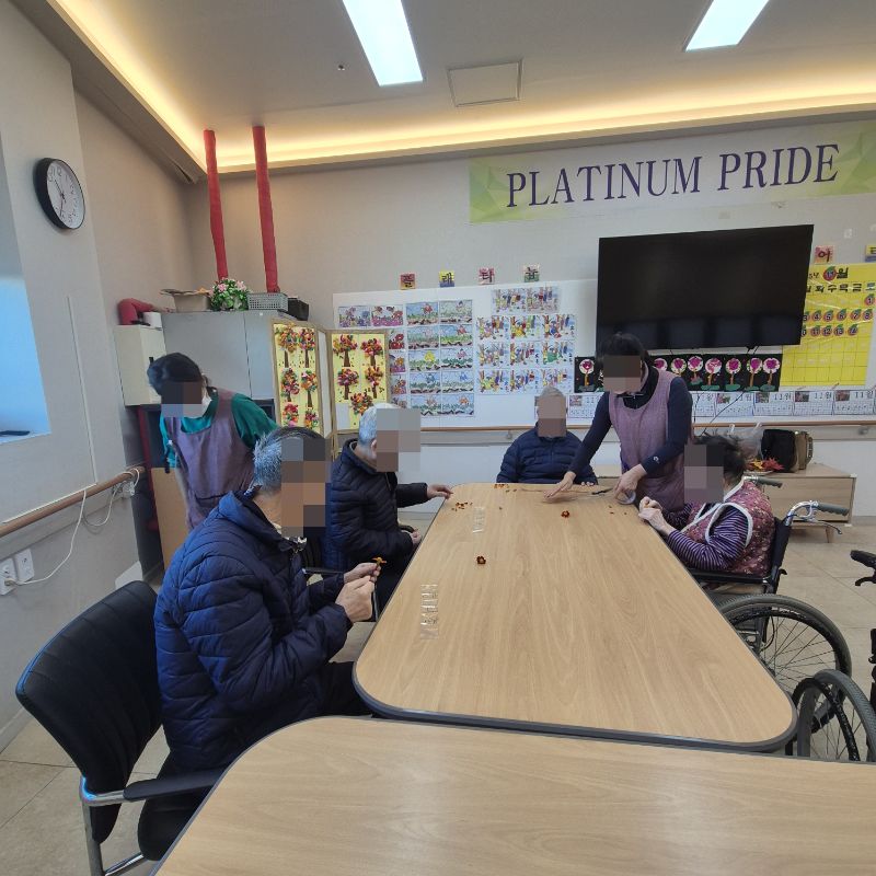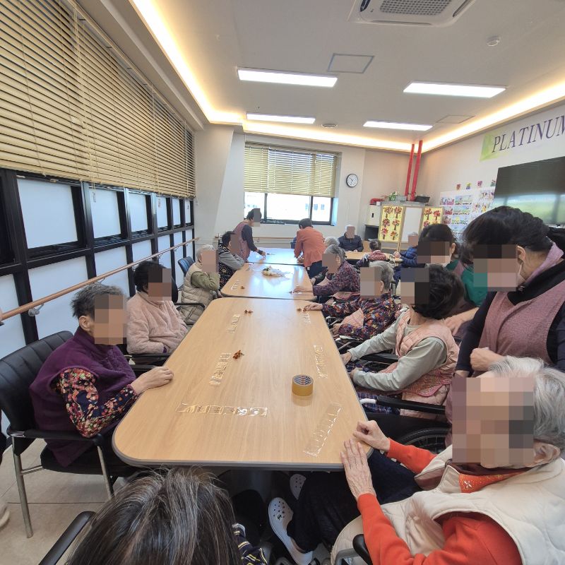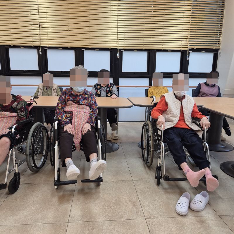 ⚬ 11월 14일 금요일_ 여가지원의 날 ⚬ 관리자 2025-11-14 17:18 오전: 코로나예방접종-코로나를 예방하기위해 예방접종을 하셨습니다.면역력이 쑥쑥 생겨서 코로나 없는 시간이 되시길 바랍니다.오전프로그램 : 외부강사 – (인지)목표: 인지향상에 도움을 주고며 원하는 작품을 완성할때 성취감을 준다. 계절에 맞는 재료의 내용을 살펴 보고 경험담을 이야기 나눠 본다.기대효과: 계절에 맞는 재료를 사용하여 계절의 변화에 적응할수 있다. 경험담을 이야기하며 자신감을 갖는다.오후프로그램 : 침상 관절 운동(신체)목표: 관절의 가동 범위 유지 및 개선. 근육 경직 예방과 혈액순환 촉진. 욕창과 근골격계 합병증 방지. 전신의 이완과 정서적 안정 도모한다.기대효과: 관절 유연성과 근력 강화로 신체기능 유지 및 개선. 삼킴 능력 향상으로 안전한 섭취 지원. 손과 팔의 조작 능력 향상으로 일상생활 자립도 증가. 균형 감각 및 조화운동 능력 개선으로 낙상 위험 감소. 지구력 증대로 신체 활동량 증가 및 전신 건강 증진한다. 다음글 ⚬ 11월 17일 월요일_ 자기존중의 날 ⚬ 이전글 ⚬ 11월 12일 수요일_ 창의성의 날 ⚬ 목록