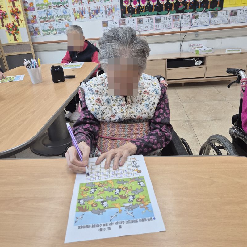 ⚬ 11월 19일 수요일_ 창의성의 날 ⚬ 관리자 2025-11-19 17:30 오전프로그램 : 외부강사- 레크레이션 (여가)목표: 레크레이션을 통해 어르신들의 신체활동을 향상한다 .기대효과: 몸을 움직이며 대∙소근육과 신진대사에 도움을 준다.오후프로그램 : 숫자만큼 색칠하기(인지)목표: 소근육 및 집중력향상에 도움이 된다. 잔존기능유지 및 자존감 향상을 시켜줄 수 있다.기대효과: 소근육 및 미적감각발달, 공간지각력 및 집중력 향상, 성취감을 통한 자존감 향상한다. 다음글 ⚬ 11월 21일 금요일_ 여가지원의 날 ⚬ 이전글 ⚬ 11월 18일 화요일_ 호기심의 날 ⚬ 목록