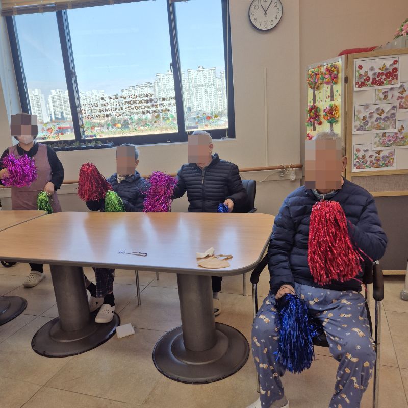 ⚬ 12월 3일 수요일_ 창의성의 날 ⚬ 관리자 2025-12-03 17:29 오전프로그램 : 외부강사- 레크레이션 (여가)목표: 레크레이션을 통해 어르신들의 신체활동을 향상한다 .기대효과: 몸을 움직이며 대∙소근육과 신진대사에 도움을 준다.오후프로그램 : 색종이 모자이크 (인지)목표: 색종이와 솜을 오리고 붙이는 과정에서 손을 움직이며 소근육 기능을 유지할 수 있다.기대효과: 집중력향상, 소근육기능 유지 향상, 성취감를 얻는다. 다음글 ⚬ 12월 5일 금요일_ 여가지원의 날 ⚬ 이전글 ⚬ 12월 2일 화요일_ 호기심의 날 ⚬ 목록