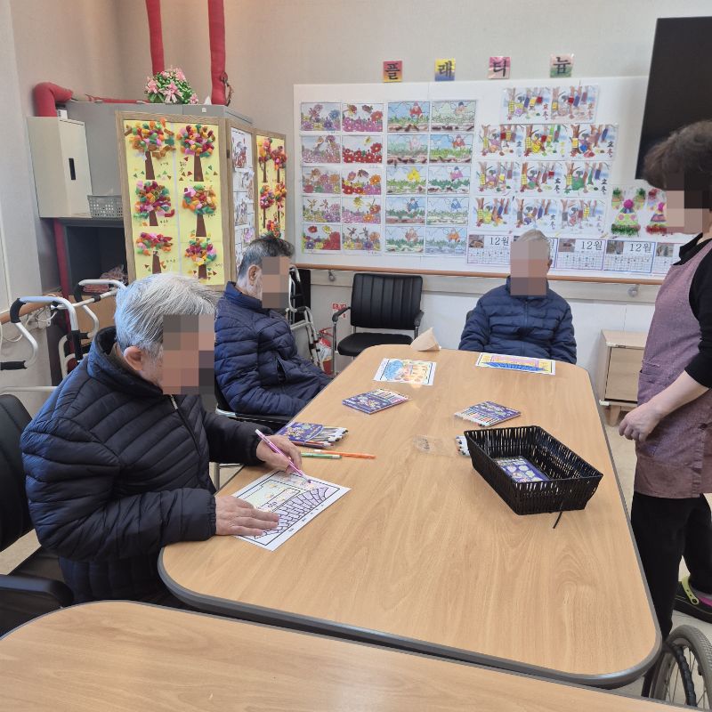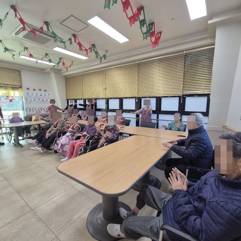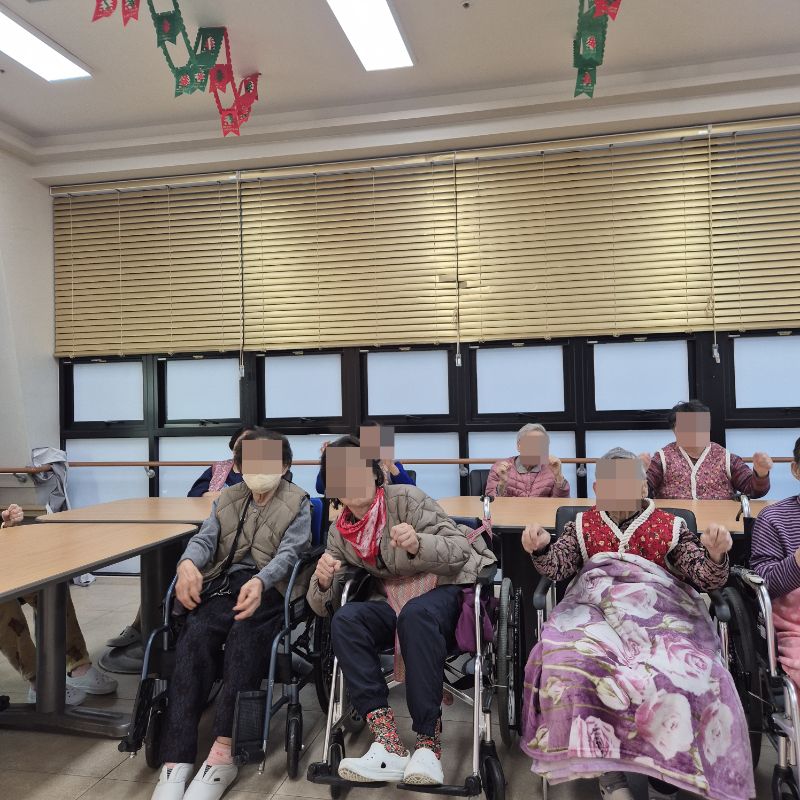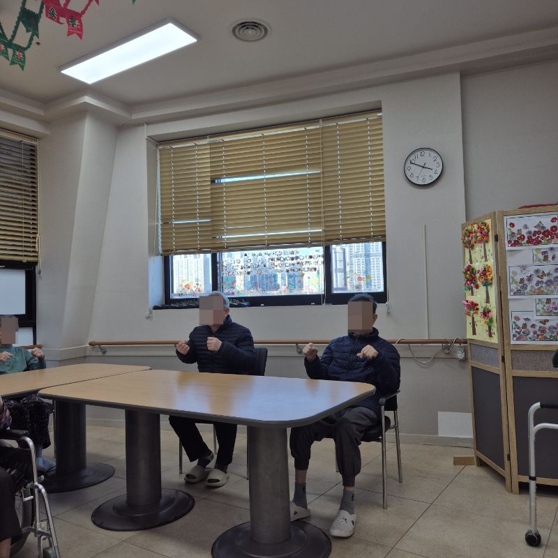 ⚬ 12월 8일 월요일_ 자기존중의 날 ⚬ 관리자 2025-12-08 17:14 오전프로그램 : 외부강사 – (인지)목표: 인지향상에 도움을 주고받으며 원하는 작품을 완성할때 성취감을 준다.기대효과: 소근육발달과 작품의 완성함을 보며 성취감을 느끼며 만족감을 형성한다.오후프로그램 : 침상 관절 운동(신체)목표: 관절의 가동 범위 유지 및 개선. 근육 경직 예방과 혈액순환 촉진. 욕창과 근골격계 합병증 방지. 전신의 이완과 정서적 안정 도모한다.기대효과: 관절 유연성과 근력 강화로 신체기능 유지 및 개선. 삼킴 능력 향상으로 안전한 섭취 지원. 손과 팔의 조작 능력 향상으로 일상생활 자립도 증가. 균형 감각 및 조화운동 능력 개선으로 낙상 위험 감소. 지구력 증대로 신체 활동량 증가 및 전신 건강 증진한다. 다음글 ⚬ 12월 9일 화요일_ 호기심의 날 ⚬ 이전글 ⚬ 12월 5일 금요일_ 여가지원의 날 ⚬ 목록