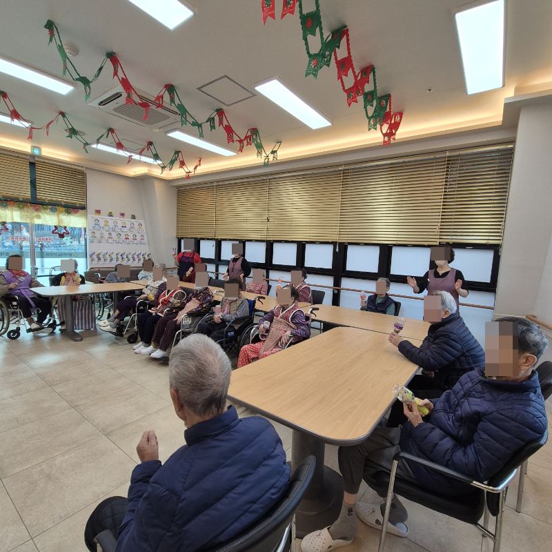 ⚬ 12월 9일 화요일_ 호기심의 날 ⚬ 관리자 2025-12-09 17:27 오전프로그램 : 마라카스 연주(여가)목표: 어르신들이 리듬을 즐기며 억압된 감정과 스트레스를 해소하고 정서적 안정감을 느낄 수 있도록 돕는다.기대효과: 마라카스를 흔들며 소근육 운동과 리듬감을 발달시켜 신체 활동 증진, 리듬과 소리를 통한 감정 해소와 긍정적인 정서 유지, 악기 연주를 통해 집중력과 기억력 개선에 기여, 그룹 활동을 통해 어르신들 간의 교류 활성화한다.오후프로그램 : 외부강사 – (인지)목표: 인지향상에 도움을 주고며 원하는 작품을 완성할때 성취감을 준다. 재료의 내용과 사용방법의 변화 알아본다.기대효과: 새로운 소재의 재료로 창의력을 증진한고 완성된 작품을 보며 성취감을 느껴 만족감 형성 한다. 다음글 ⚬ 12월 10일 수요일_ 창의성의 날 ⚬ 이전글 ⚬ 12월 8일 월요일_ 자기존중의 날 ⚬ 목록