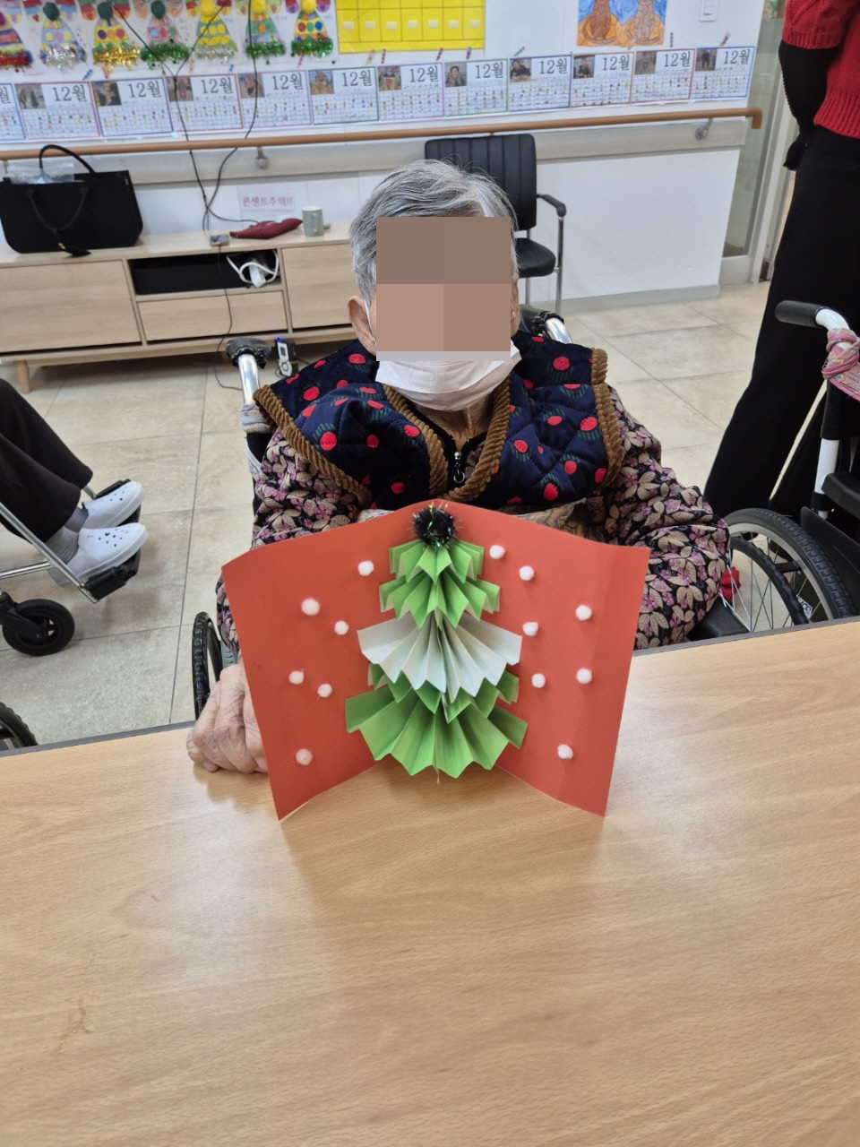 ⚬ 12월 16일 화요일_ 호기심의 날 ⚬ 관리자 2025-12-22 17:26 오전프로그램 : 따뜻한 발(여가)목표: 발을 따뜻하게 하여 혈액 순환을 하고 긴장과 스트레스를 해소하며, 병의 예방과 건강회복에 도움을 준다.기대효과: 혈액 순환 및 긴장과 스트레스 해소, 질병의 예방 및 정신적 유대감 형성을 기대 한다.오후프로그램 : 외부강사 – (인지)목표: 인지향상에 도움을 주고며 원하는 작품을 완성할때 성취감을 준다. 재료의 내용과 사용방법의 변화 알아본다.기대효과: 새로운 소재의 재료로 창의력을 증진한고 완성된 작품을 보며 성취감을 느껴 만족감 형성 한다. 다음글 ⚬ 12월 17일 수요일_ 창의성의 날 ⚬ 이전글 ⚬ 12월 15일 월요일_ 자기존중의 날 ⚬ 목록