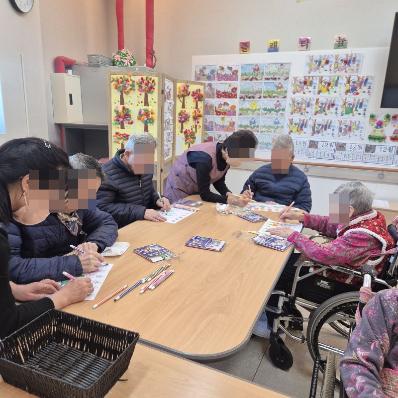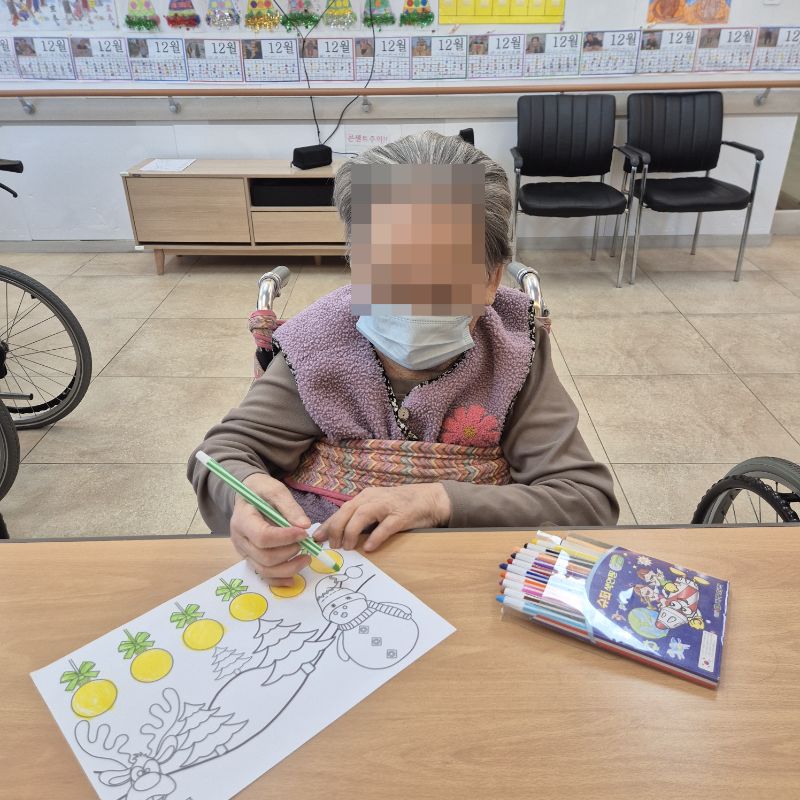 ⚬ 12월 22일 월요일_ 자기존중의 날 ⚬ 관리자 2025-12-22 17:29 오전프로그램 : 외부강사 – (인지)목표: 인지향상에 도움을 주고받으며 원하는 작품을 완성할때 성취감을 준다.기대효과: 소근육발달과 작품의 완성함을 보며 성취감을 느끼며 만족감을 형성한다.오후프로그램 : 자세 변경(신체)목표: 혼자서 운동을 할 수 없는 어르신의 관절구축을 예방하고, 스스로 체위변경 및 운동을 할 수 있도록 도와 욕창발생을 예방한다. 안정된 걸음걸이와 균형감각 훈련을 실시하여 낙상 및 그로 인한 손상을 예방한다. 어르신의 각자 신체 인지상태에서 최대한 독립적이고, 안전한 생활을 할 수 있게 한다.기대효과: 스스로 체위변경 및 운동을 할 수 있도록 도와 욕창발생을 예방한다. 균형감각 훈련을 실시하여 낙상 및 그로 인한 손상을 예방한다. 다음글 ⚬ 12월 23일 화요일_ 호기심의 날 ⚬ 이전글 ⚬ 12월 19일 금요일_ 여가지원의 날 ⚬ 목록