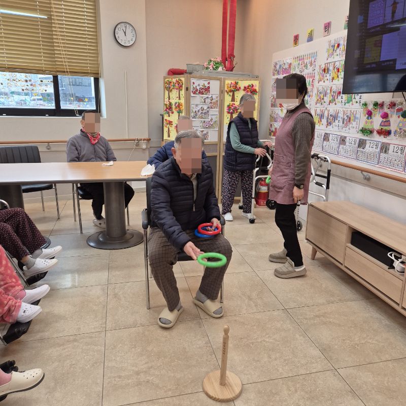 ⚬ 12월 23일 화요일_ 호기심의 날 ⚬ 관리자 2025-12-23 17:58 오전프로그램 : 고리 던지기(여가)목표: 소근육 증진과 사회성 발달및 신체 조절능력을 기를수 있다. 신체를 움직이며 기분전환을 할수 있다. 타인과 사회성을 증진할수 있다.기대효과: 소근육 증진, 사회성 발달, 신체 조절능력 향상, 기분전환 효과를 기대한다.오후프로그램 : 외부강사 – (인지)목표: 인지향상에 도움을 주고며 원하는 작품을 완성할때 성취감을 준다. 재료의 내용과 사용방법의 변화 알아본다.기대효과: 새로운 소재의 재료로 창의력을 증진한고 완성된 작품을 보며 성취감을 느껴 만족감 형성 한다.생신잔치 : 신0례어르신, 구0희어르신, 황0예어르신, 최0경어르신, 하0자어르신, 전0하어르신생신잔치를 열어 어르신들께 만수무강 하시라고 축하 인사를 드리고 축가를 불러드렸습니다.보내주신 떡과 과일을 맛있게 나눠 드시는 행복한 잔치였습니다.매일매일이 잔칫날인 오늘만 같았으면 좋겠습니다. 생신축하드립니다.~ 건강하세요.~~ 다음글 ⚬ 12월 24일 수요일_ 창의성의 날 ⚬ 이전글 ⚬ 12월 22일 월요일_ 자기존중의 날 ⚬ 목록
