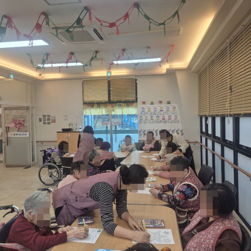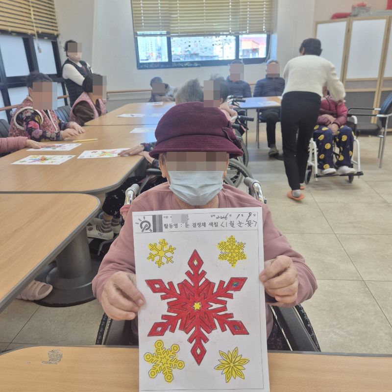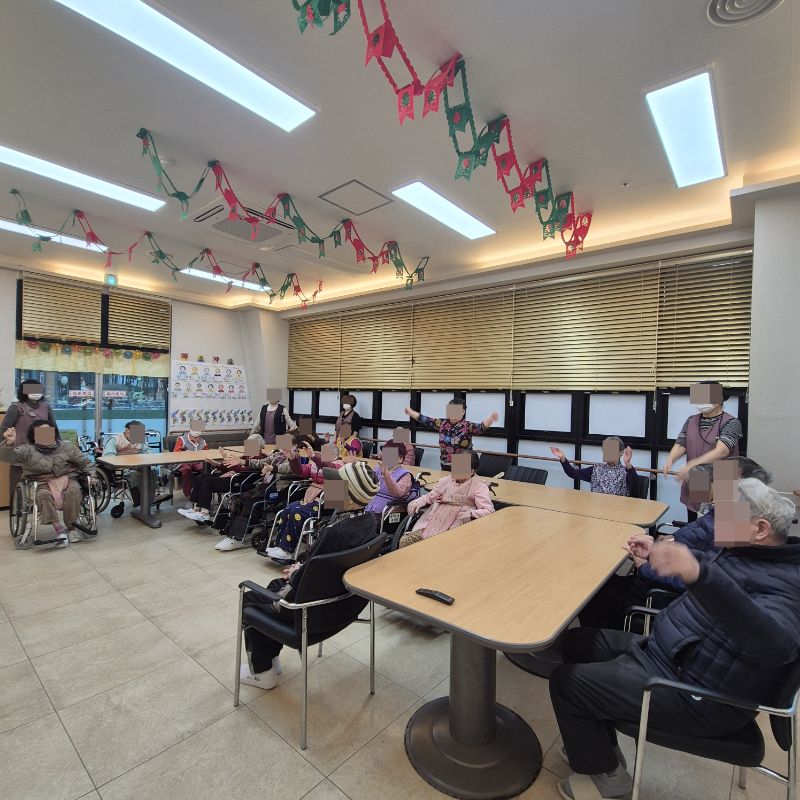 ⚬ 1월 9일 금요일_ 여가지원의 날 ⚬ 관리자 2026-01-09 17:18 오전프로그램 : 외부강사 – (인지)목표: 인지향상에 도움을 주고며 원하는 작품을 완성할때 성취감을 준다. 계절에 맞는 재료의 내용을 살펴 보고 경험담을 이야기 나눠 본다.기대효과: 계절에 맞는 재료를 사용하여 계절의 변화에 적응할수 있다. 경험담을 이야기하며 자신감을 갖는다.오후프로그램 : 국민 체조(신체)목표: 전신 근육의 균형 있는 사용으로 신체 건강 유지, 유연성 및 근력을 강화하여 일상생활 동작 수행 능력 향상, 심폐 기능 개선과 혈액순환 촉진, 규칙적인 운동 습관 형성 및 정서적 안정을 도모한다.기대효과: 관절 가동 범위와 균형감각이 개선되어 일상생활에서의 움직임이 원활해짐. 음악과 함께하는 국민체조는 재미와 동기부여를 제공하여 심리적 만족감을 높인다. 다음글 ⚬ 1월 12일 월요일_ 자기존중의 날 ⚬ 이전글 ⚬ 1월 7일 수요일_ 창의성의 날 ⚬ 목록