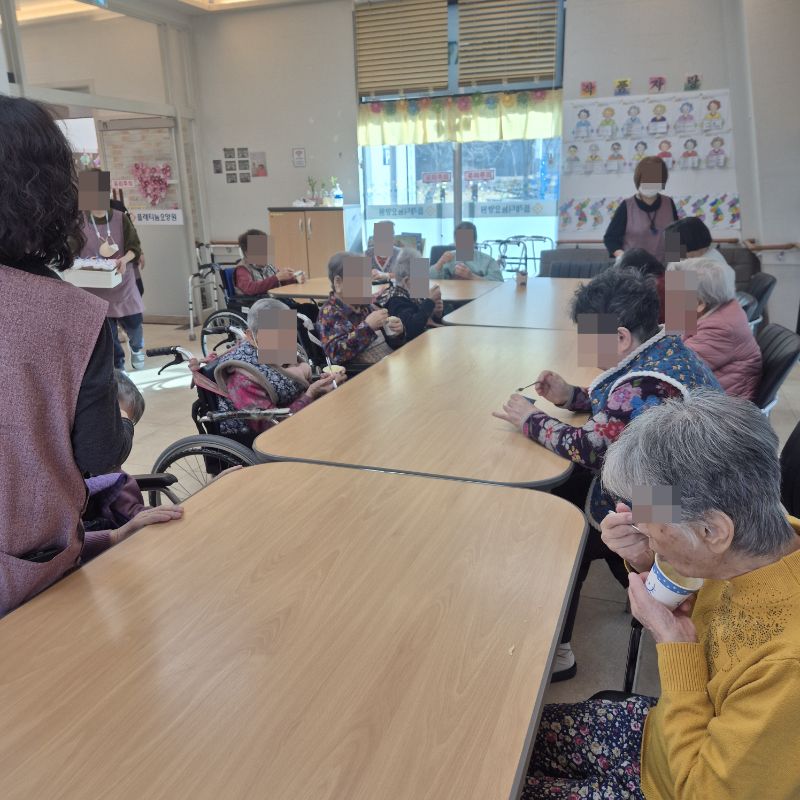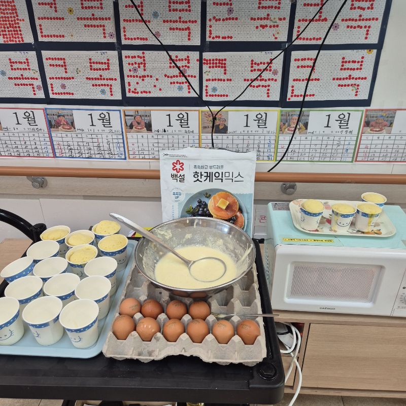 ⚬ 1월 16일 금요일_ 여가지원의 날 ⚬ 관리자 2026-01-16 17:20 오전프로그램 : 자세 변경(신체)목표: 혼자서 운동을 할 수 없는 어르신의 관절구축을 예방하고, 스스로 체위변경 및 운동을 할 수 있도록 도와 욕창발생을 예방한다. 안정된 걸음걸이와 균형감각 훈련을 실시하여 낙상 및 그로 인한 손상을 예방한다. 어르신의 각자 신체 인지상태에서 최대한 독립적이고, 안전한 생활을 할 수 있게 한다.기대효과: 스스로 체위변경 및 운동을 할 수 있도록 도와 욕창발생을 예방한다. 균형감각 훈련을 실시하여 낙상 및 그로 인한 손상을 예방한다.오후프로그램: 컵케익 만들기(가족)목표: 여러 어르신들과 다함께 가루를 섞고 익히며, 공감대를 형성, 과거 기억을 회상한다.기대효과: 요리활동을 통해 좋은기억의 유지및 자존감 향상, 눈과 손의 협응력, 집중력 및 생활의 활력소 도모, 함께하는 즐거움을 느낀다. 다음글 ⚬ 1월 17일 토요일_ 공연관람 ⚬ 이전글 ⚬ 1월 14일 수요일_ 창의성의 날 ⚬ 목록