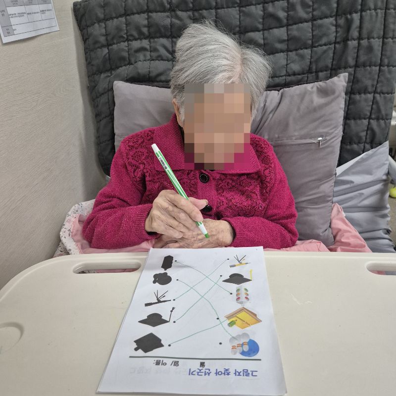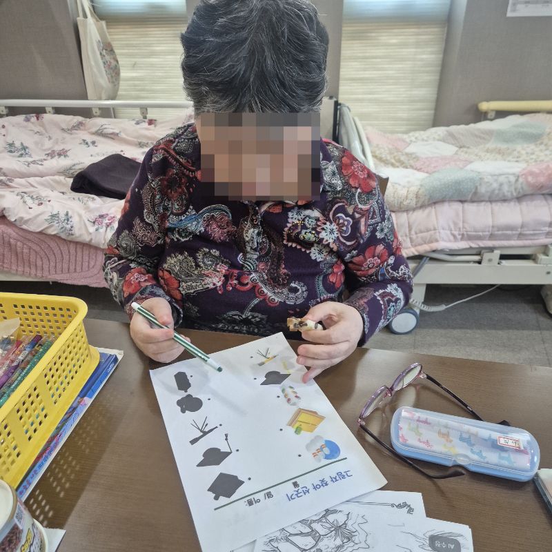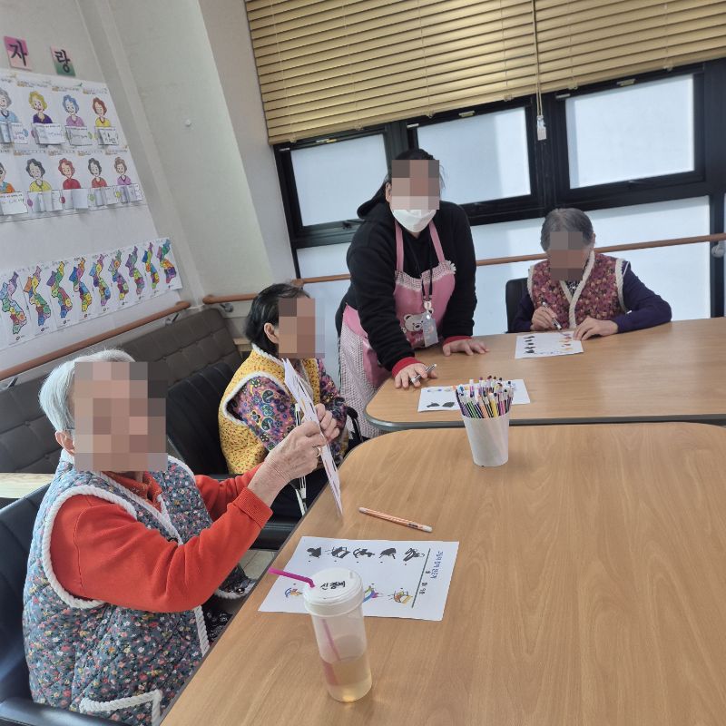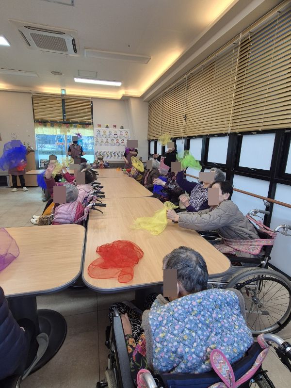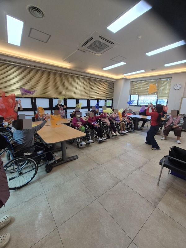 ⚬ 1월 21일 수요일_ 창의성의 날 ⚬ 관리자 2026-01-21 17:41 오전프로그램 : 외부강사- 레크레이션 (여가)목표: 레크레이션을 통해 어르신들의 신체활동을 향상한다 .기대효과: 몸을 움직이며 대∙소근육과 신진대사에 도움을 준다.오후프로그램 : 그림자 찾기(인지)목표: 두뇌회전 자극 효과에 도움이 되며 뇌운동 활성화에 도움이 된다.기대효과: 사물의 특징을 찾아 내어 이야기를 나누며 기억하기. 도안 활동을 통해 손과 눈의 협응력(손-눈 조율 능력)을 향상하기. 활동 성공 시 성취감을 느끼고 칭찬과 격려를 통해 자존감이 증진시킨다. 다음글 ⚬ 1월 23일 금요일_ 여가지원의 날 ⚬ 이전글 ⚬ 1월 20일 화요일_ 호기심의 날 ⚬ 목록