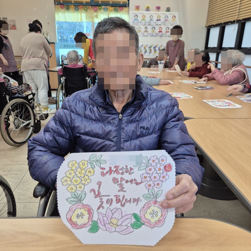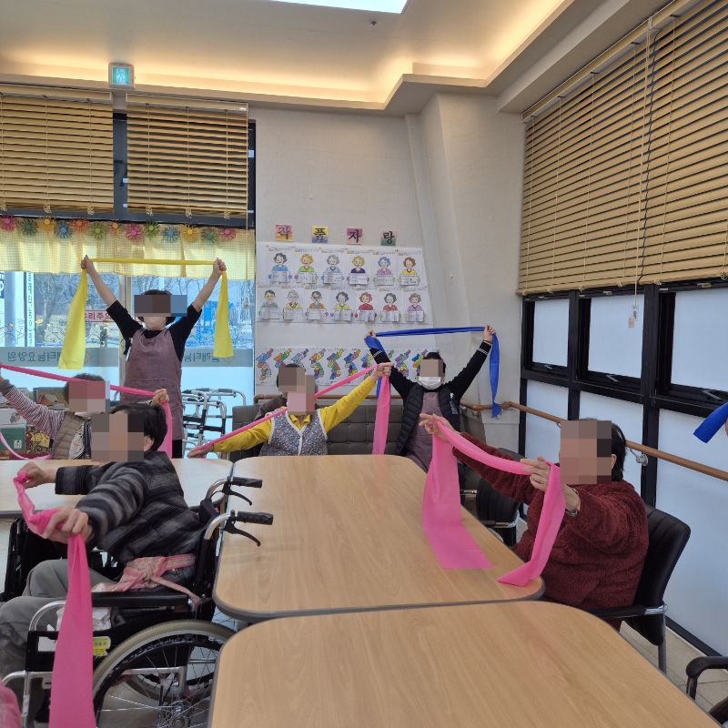 ⚬ 1월 23일 금요일_ 여가지원의 날 ⚬ 관리자 2026-01-23 17:43 오전프로그램 : 외부강사 – (인지)목표: 인지향상에 도움을 주고며 원하는 작품을 완성할때 성취감을 준다. 계절에 맞는 재료의 내용을 살펴 보고 경험담을 이야기 나눠 본다.기대효과: 계절에 맞는 재료를 사용하여 계절의 변화에 적응할수 있다. 경험담을 이야기하며 자신감을 갖는다.오후프로그램 : 밴드 스트레칭(신체)목표: 근육 유연성 증진 및 관절 가동 범위 확대. 통증 감소와 긴장 완화. 근육과 관절의 부상 예방. 전신 순환 개선으로 신체 활력 증대한다.기대효과: 근육과 관절의 유연성 향상으로 움직임 개선. 긴장된 근육과 통증 완화로 신체적 편안함 제공. 혈액순환 개선으로 신체 활력 증대. 스트레스 감소 및 정서적 안정감 증대. 일상생활 동작 수행 능력 강화한다. 다음글 ⚬ 1월 26일 월요일_ 자기존중의 날 ⚬ 이전글 ⚬ 1월 21일 수요일_ 창의성의 날 ⚬ 목록