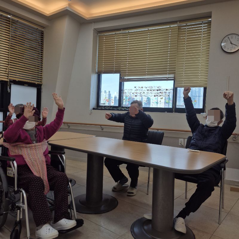 ⚬ 1월 30일 금요일_ 여가지원의 날 ⚬ 관리자 2026-01-30 17:21 오전프로그램 : 외부강사 – (인지)목표: 인지향상에 도움을 주고며 원하는 작품을 완성할때 성취감을 준다. 계절에 맞는 재료의 내용을 살펴 보고 경험담을 이야기 나눠 본다.기대효과: 계절에 맞는 재료를 사용하여 계절의 변화에 적응할수 있다. 경험담을 이야기하며 자신감을 갖는다.오후프로그램 : 침상 관절 운동(신체)목표: 관절의 가동 범위 유지 및 개선. 근육 경직 예방과 혈액순환 촉진. 욕창과 근골격계 합병증 방지. 전신의 이완과 정서적 안정 도모한다.기대효과: 관절 유연성과 근력 강화로 신체기능 유지 및 개선. 삼킴 능력 향상으로 안전한 섭취 지원. 손과 팔의 조작 능력 향상으로 일상생활 자립도 증가. 균형 감각 및 조화운동 능력 개선으로 낙상 위험 감소. 지구력 증대로 신체 활동량 증가 및 전신 건강 증진한다. 다음글 ⚬ 2월 2일 월요일_ 자기존중의 날 ⚬ 이전글 ⚬ 1월 28일 수요일_ 창의성의 날 ⚬ 목록