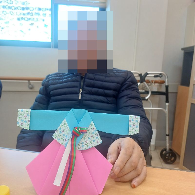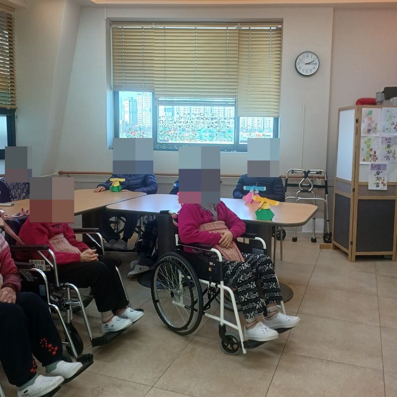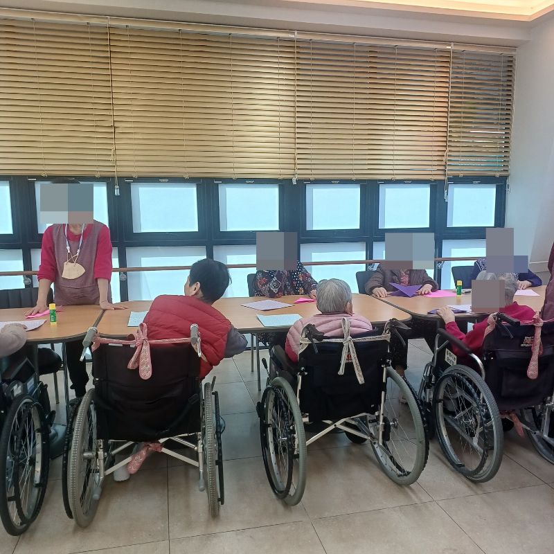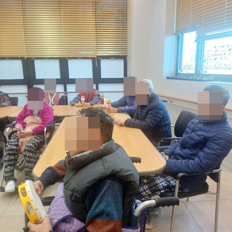 ⚬ 2월 3일 화요일_ 호기심의 날 ⚬ 관리자 2026-02-03 17:52 오전프로그램 : 마라카스 연주(여가)목표: 어르신들이 리듬을 즐기며 억압된 감정과 스트레스를 해소하고 정서적 안정감을 느낄 수 있도록 돕는다.기대효과: 마라카스를 흔들며 소근육 운동과 리듬감을 발달시켜 신체 활동 증진, 리듬과 소리를 통한 감정 해소와 긍정적인 정서 유지, 악기 연주를 통해 집중력과 기억력 개선에 기여, 그룹 활동을 통해 어르신들 간의 교류 활성화한다.오후프로그램 : 외부강사 – (인지)목표: 인지향상에 도움을 주고며 원하는 작품을 완성할때 성취감을 준다. 재료의 내용과 사용방법의 변화 알아본다.기대효과: 새로운 소재의 재료로 창의력을 증진한고 완성된 작품을 보며 성취감을 느껴 만족감 형성 한다. 다음글 ⚬ 2월 4일 수요일_ 창의성의 날 ⚬ 이전글 ⚬ 2월 2일 월요일_ 자기존중의 날 ⚬ 목록