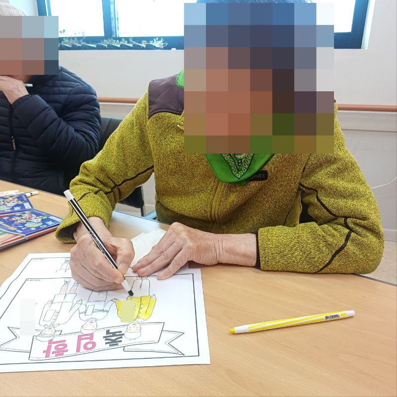 ⚬ 3월 2일 월요일_ 자기존중의 날 ⚬ 관리자 2026-03-02 17:36 오전프로그램 : 외부강사 – (인지)목표: 인지향상에 도움을 주고받으며 원하는 작품을 완성할때 성취감을 준다.기대효과: 소근육발달과 작품의 완성함을 보며 성취감을 느끼며 만족감을 형성한다.오후프로그램 : 자세 변경(신체)목표: 혼자서 운동을 할 수 없는 어르신의 관절구축을 예방하고, 스스로 체위변경 및 운동을 할 수 있도록 도와 욕창발생을 예방한다. 안정된 걸음걸이와 균형감각 훈련을 실시하여 낙상 및 그로 인한 손상을 예방한다. 어르신의 각자 신체 인지상태에서 최대한 독립적이고, 안전한 생활을 할 수 있게 한다.기대효과: 스스로 체위변경 및 운동을 할 수 있도록 도와 욕창발생을 예방한다. 균형감각 훈련을 실시하여 낙상 및 그로 인한 손상을 예방한다. 다음글 ⚬ 3월 3일 화요일_ 호기심의 날 ⚬ 이전글 ⚬ 2월 27일 금요일_ 여가지원의 날 ⚬ 목록