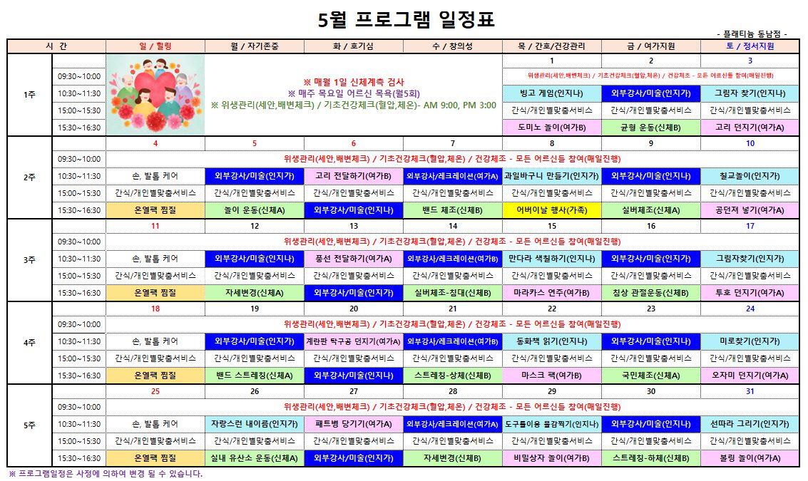 ㅇ 5월 프로그램 일정표 ㅇ 관리자 2025-04-30 16:54 ** 원 사정에 의해 변경될수 있습니다. 다음글 ㅇ 5월2주, 5월1주 식단표 ㅇ 이전글 ㅇ 4월 5주 식단표 ㅇ 목록