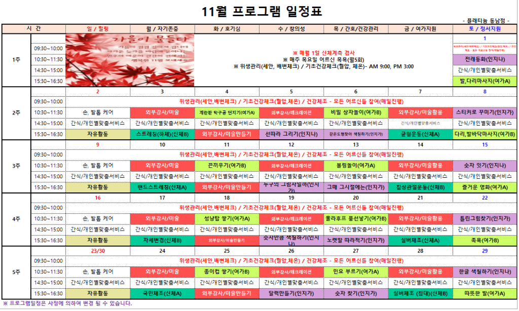 ㅇ 11월 프로그램 일정표 ㅇ
