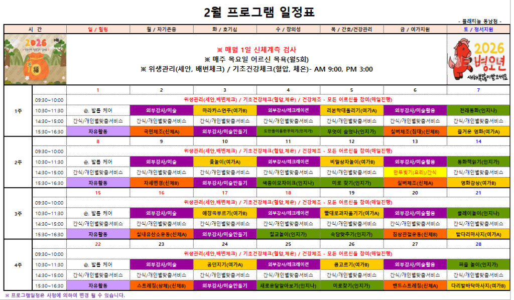 ㅇ 2월 프로그램 일정표 ㅇ