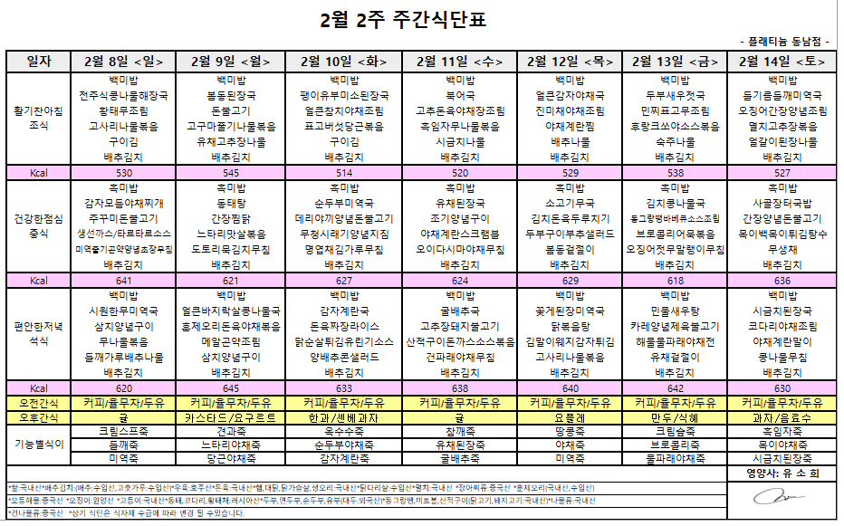 ㅇ 2월2주 식단표 ㅇ