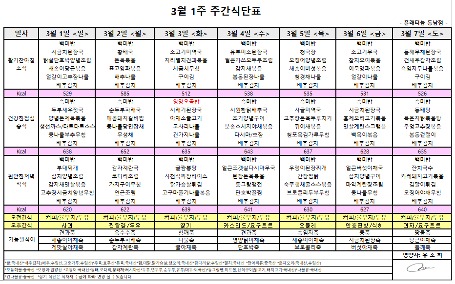 ㅇ 3월1주 식단표 ㅇ