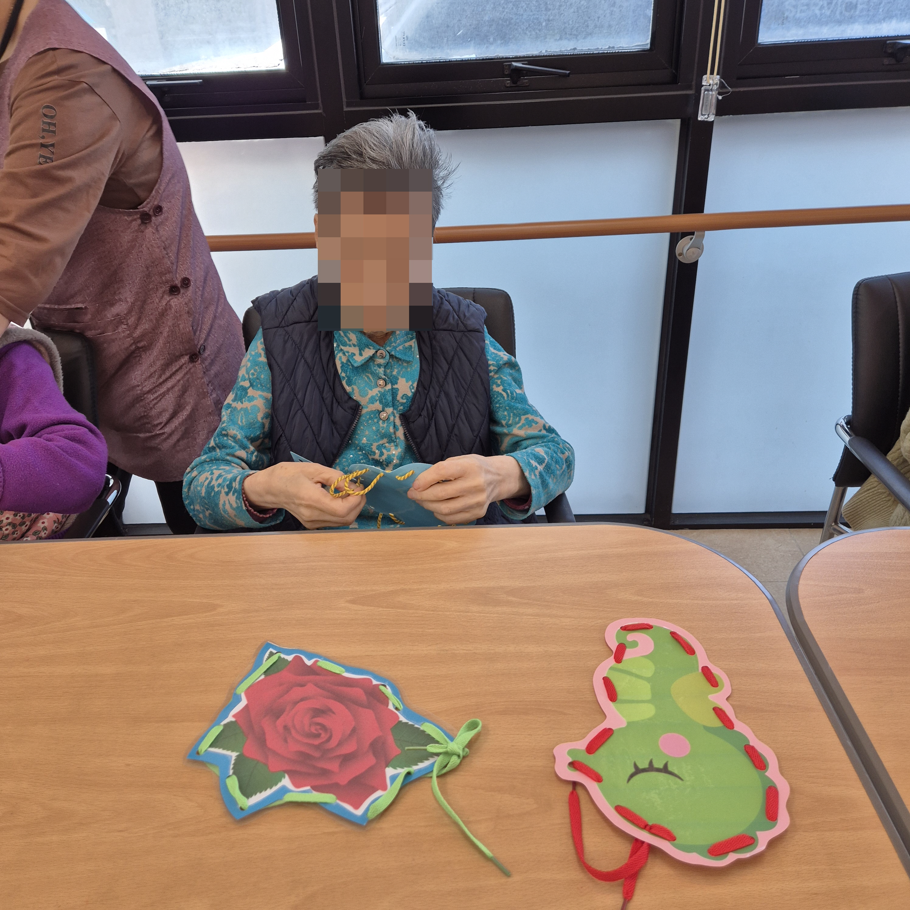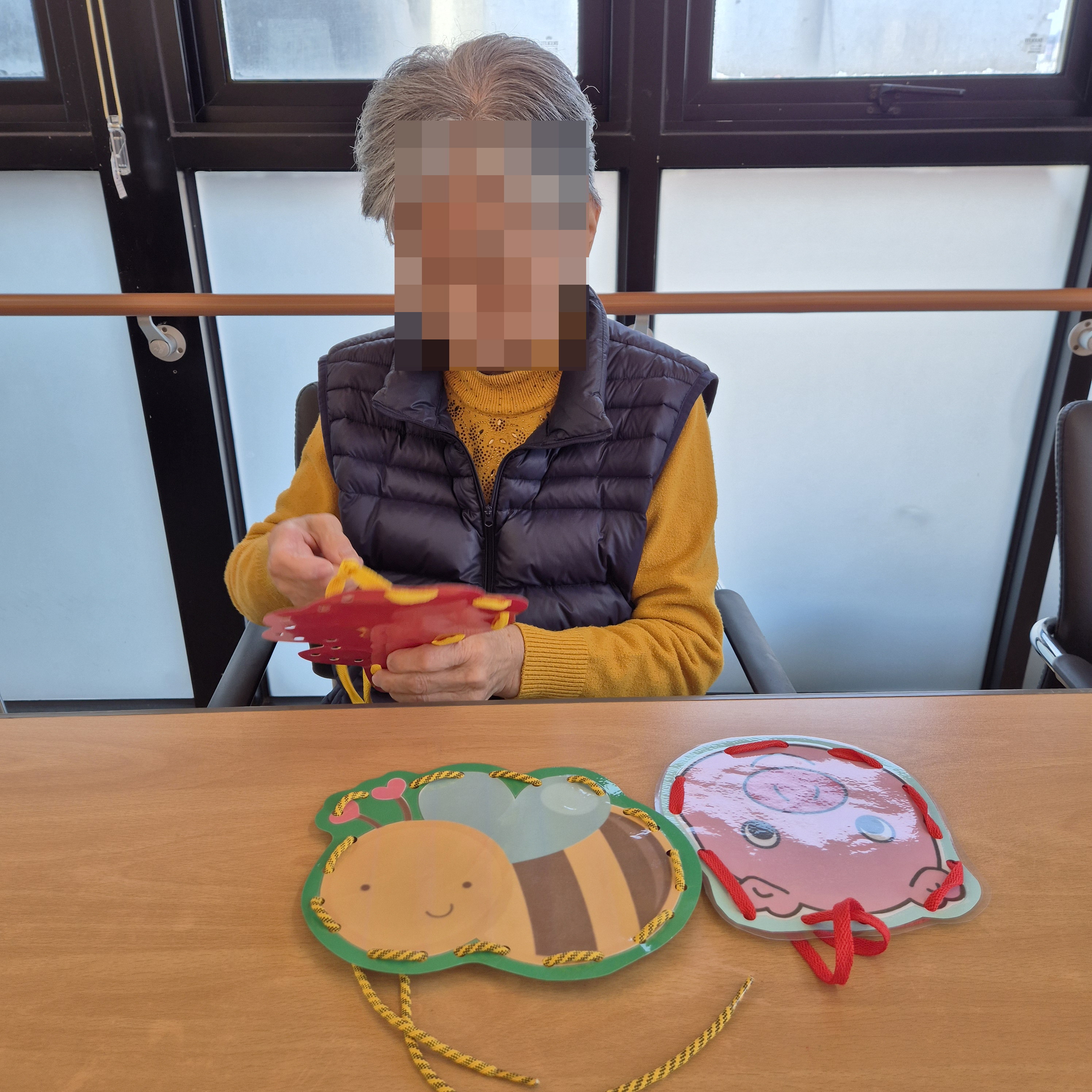 ⚬ 4월 15일 화요일_ 호기심의 날 ⚬ 관리자 2025-04-15 17:06 오전프로그램 : 끈끼우기 (여가).목표: 손가락 소근육을 사용하여 치매예방.기대효과: 집중력, 인지력, 협응력, 추리력, 기억력, 성취감, 사회성발달, 공간지각능력.오후프로그램 : 외부강사 –(인지)목표: 인지향상에 도움을 주고받으며 원하는 작품을 완성할때 성취감을 준다.기대효과: 소근육발달과 작품의 완성함을 보며 성취감을 느끼며 만족감을 형성한다. 다음글 ⚬ 4월 16일 수요일_ 창의성의 날 ⚬ 이전글 ⚬ 4월 14일 월요일_ 자기존중의 날 ⚬ 목록