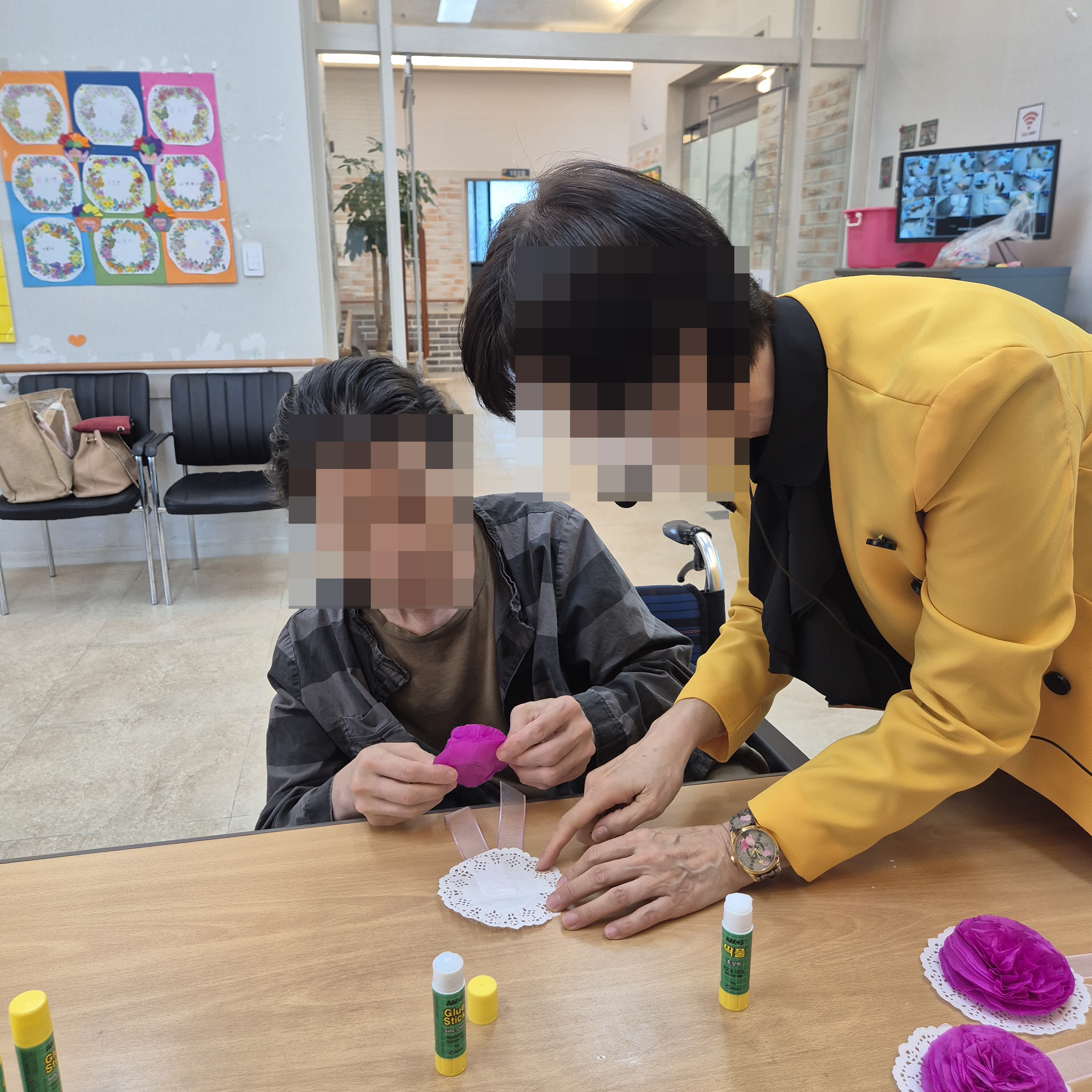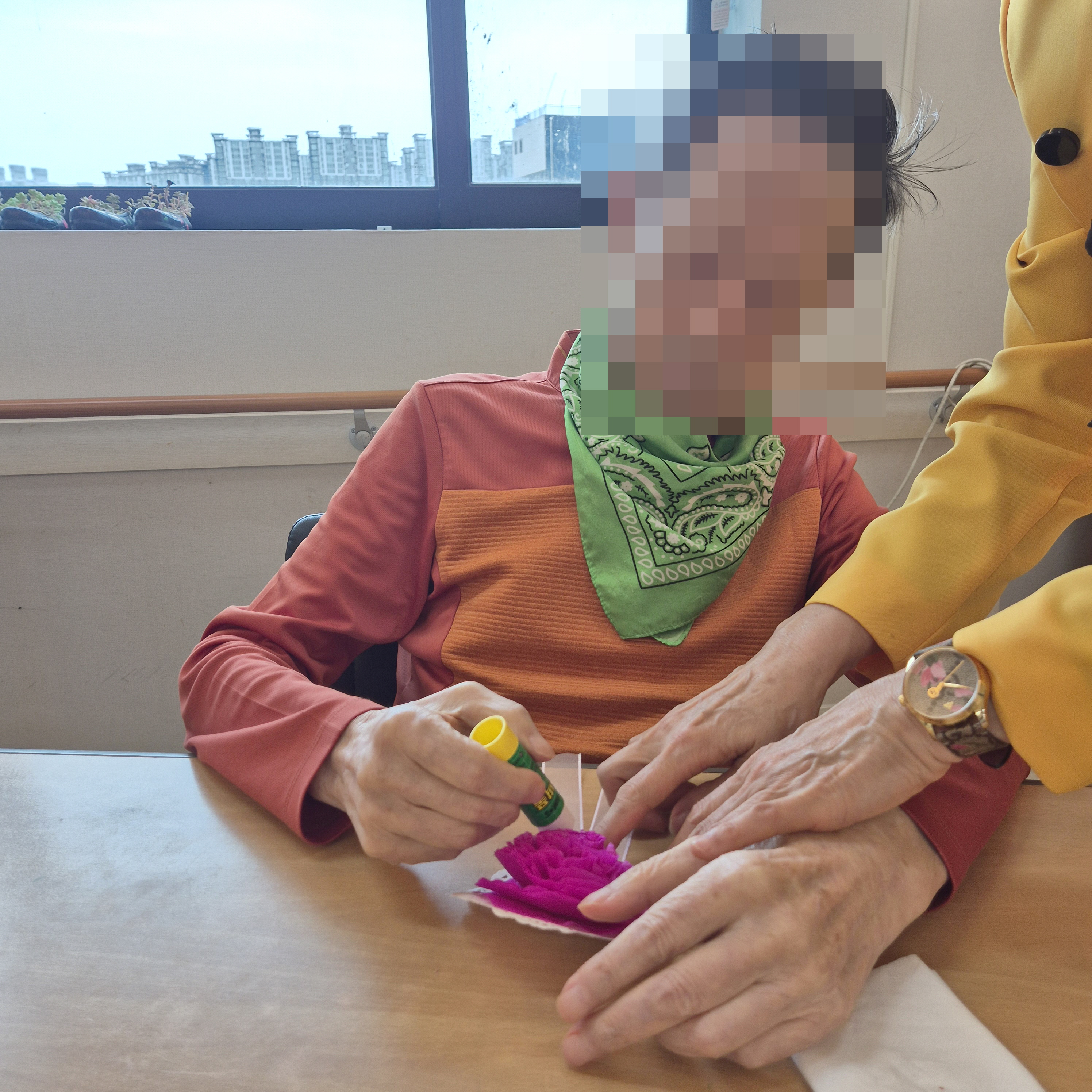 ⚬ 5월 6일 화요일_ 호기심의 날 ⚬ 관리자 2025-05-06 17:02 오전프로그램 : 고리 전달하기(여가)목표: 손으로 줄을 잡는 작업을 통해 소 근육을 발달 시킬 수 있다. 고리를 전달하며 전달 행동을 통해 타인에 대한 배려심을 키울 수 있다. 사회성 발달과 신체 조절 능력을 기를 수 있다.기대효과: 집중력, 인지력, 협응력, 추리력, 기억력, 성취감, 사회성 발달, 공간 지각 능력 향상.오후프로그램 : 외부강사 – (인지)목표: 인지향상에 도움을 주고받으며 원하는 작품을 완성할때 성취감을 준다.기대효과: 소근육발달과 작품의 완성함을 보며 성취감을 느끼며 만족감을 형성한다. 다음글 ⚬ 5월 7일 수요일_ 창의성의 날 ⚬ 이전글 ⚬ 5월 5일 월요일_ 자기존중의 날 ⚬ 목록