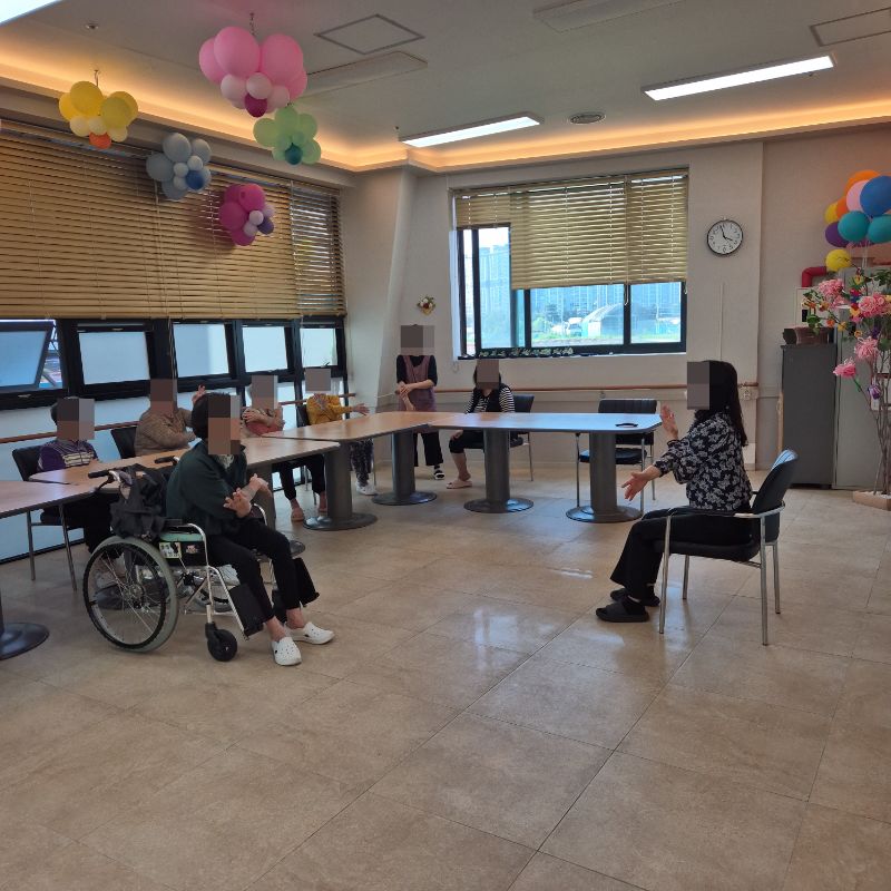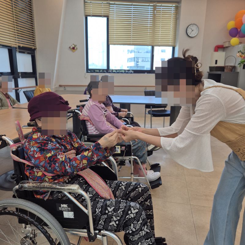 ⚬ 5월 12일 월요일_ 자기존중의 날 ⚬ 관리자 2025-05-12 17:09 오전프로그램 : 외부강사 – (인지)목표: 인지향상에 도움을 주고받으며 원하는 작품을 완성할때 성취감을 준다.기대효과: 소근육발달과 작품의 완성함을 보며 성취감을 느끼며 만족감을 형성한다.오후프로그램 : 자세 변경(신체)목표: 욕창 및 관절 경직 예방.혈액순환 개선과 근육 긴장 완화.신체 정렬을 유지하여 통증 완화 및 편안함 제공. 심리적 안정 및 긍정적인 정서 유발.기대효과: 압력 부하를 감소시켜 피부 건강 유지.관절 경직 예방과 유연성 유지. 정체된 혈액 흐름 개선으로 건강 유지. 자세 변화를 통해 근육과 신경의 부담 경감. 편안한 환경과 신체 정렬로 심리적 안도감 제공. 다음글 ⚬ 5월 13일 화요일_ 호기심의 날 ⚬ 이전글 ⚬ 5월 9일 금요일_ 여가지원의 날 ⚬ 목록
