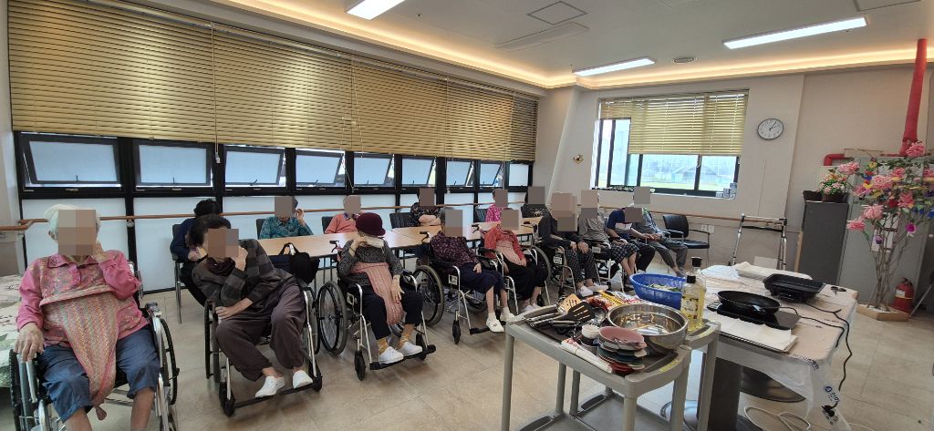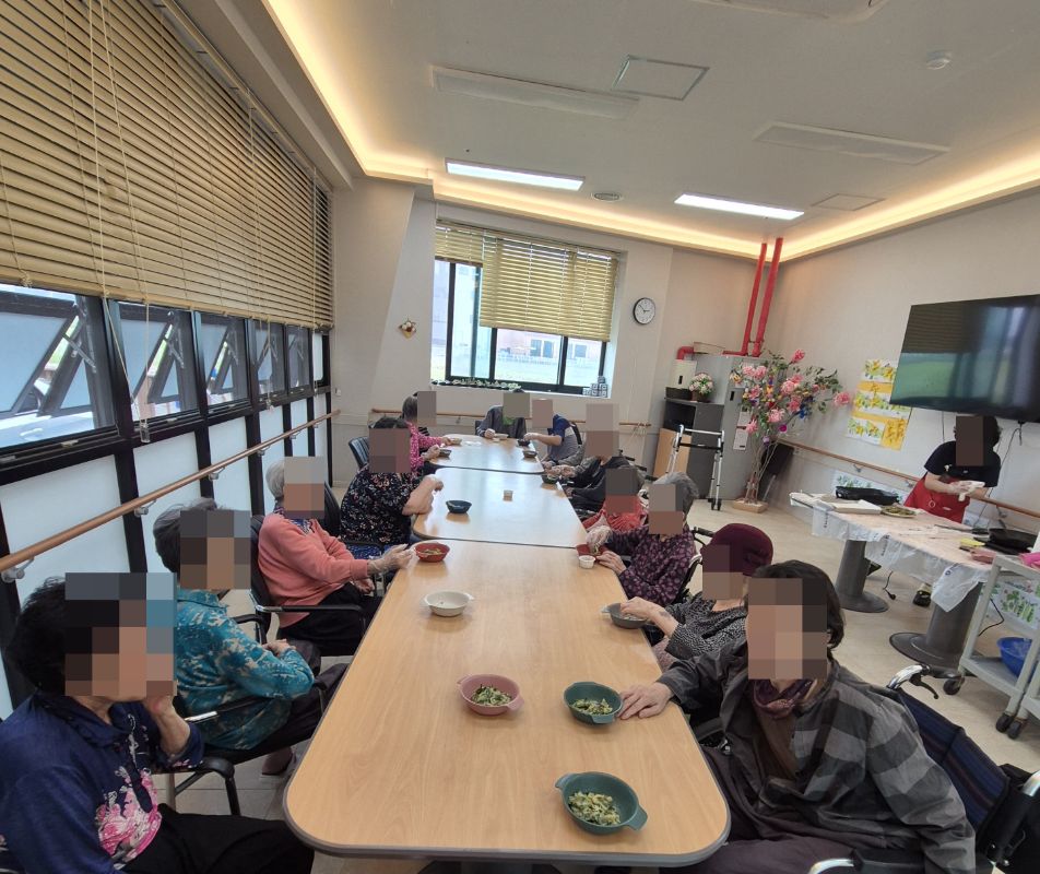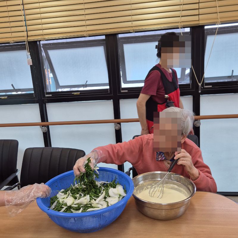 ⚬ 6월 2일 월요일_ 자기존중의 날 ⚬ 관리자 2025-06-02 17:15 오전프로그램 : 실버 체조-침대(신체)목표: 신체 움직임과 인지 훈련을 병행하여 뇌 기능 활성화,기억력, 주의력, 언어 능력 등 인지 기능 강화,혈액순환 개선과 신체 활동량 증가,긍정적인 정서 유도 및 스트레스 감소한다.기대효과: 신체 움직임과 인지 자극을 통해 뇌의 다양한 영역 활성화.손발 움직임을 통해 전신 혈류 촉진.긍정적인 활동으로 스트레스 감소 및 삶의 활력을 증대한다.오후프로그램 : 부추전 만들기(요리)목표: 여러 어르신들과 다함께 전을 지지며, 공감대를 형성, 과거 기억을 회상한다.기대효과: 회상활동을 통해 좋은기억의 유지및 자존감 향상, 눈과 손의 협응력, 집중력 및 생활의 활력소 도모, 함께하는 즐거움 느낀다. 다음글 ⚬ 6월 3일 화요일_ 호기심의 날 ⚬ 이전글 ⚬ 5월 30일 금요일_ 여가지원의 날 ⚬ 목록