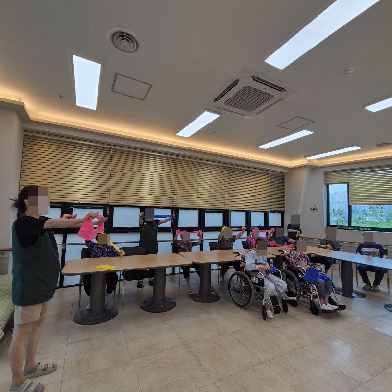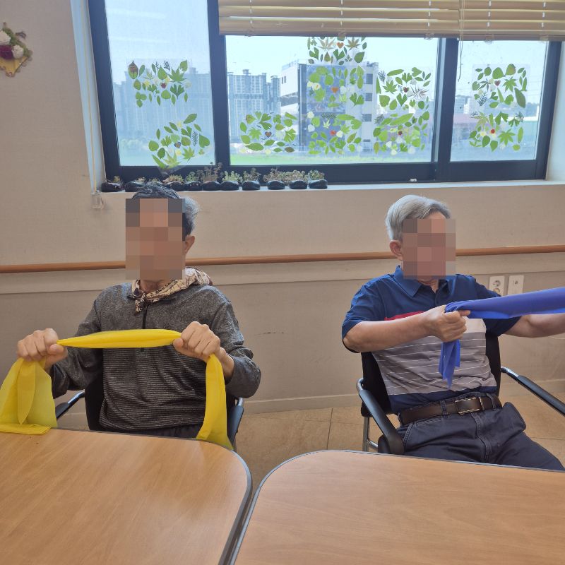 ⚬ 6월 23일 월요일_ 자기존중의 날 ⚬ 관리자 2025-06-23 16:56 오전프로그램 : 외부강사 – (인지)목표: 인지향상에 도움을 주고받으며 원하는 작품을 완성할때 성취감을 준다.기대효과: 소근육발달과 작품의 완성함을 보며 성취감을 느끼며 만족감을 형성한다.오후프로그램 : 밴드 스트레칭(신체)목표: 근육 유연성 증진 및 관절 가동 범위 확대. 통증 감소와 긴장 완화. 근육과 관절의 부상 예방. 전신 순환 개선으로 신체 활력 증대한다.기대효과: 근육과 관절의 유연성 향상으로 움직임 개선. 긴장된 근육과 통증 완화로 신체적 편안함 제공. 혈액순환 개선으로 신체 활력 증대. 스트레스 감소 및 정서적 안정감 증대. 일상생활 동작 수행 능력 강화한다. 다음글 ⚬ 6월 24일 화요일_ 호기심의 날 ⚬ 이전글 ⚬ 6월 20일 금요일_ 여가지원의 날 ⚬ 목록