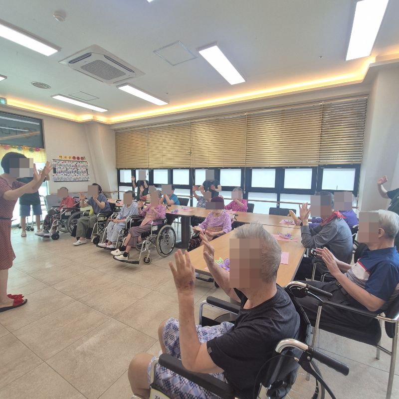 ⚬ 7월 1일 화요일_ 호기심의 날 ⚬ 관리자 2025-07-01 16:58 오전프로그램 : 마라카스 연주(여가)목표: 어르신들이 리듬을 즐기며 억압된 감정과 스트레스를 해소하고 정서적 안정감을 느낄 수 있도록 돕는다.기대효과: 마라카스를 흔들며 소근육 운동과 리듬감을 발달시켜 신체 활동 증진, 리듬과 소리를 통한 감정 해소와 긍정적인 정서 유지, 악기 연주를 통해 집중력과 기억력 개선에 기여, 그룹 활동을 통해 어르신들 간의 교류 활성화한다.오후프로그램 : 외부강사 – (인지)목표: 인지향상에 도움을 주고며 원하는 작품을 완성할때 성취감을 준다. 재료의 내용과 사용방법의 변화 알아본다.기대효과: 새로운 소재의 재료로 창의력을 증진한고 완성된 작품을 보며 성취감을 느껴 만족감 형성한다. 다음글 ⚬ 7월 2일 수요일_ 창의성의 날 ⚬ 이전글 ⚬ 6월 27일 금요일_ 여가지원의 날 ⚬ 목록