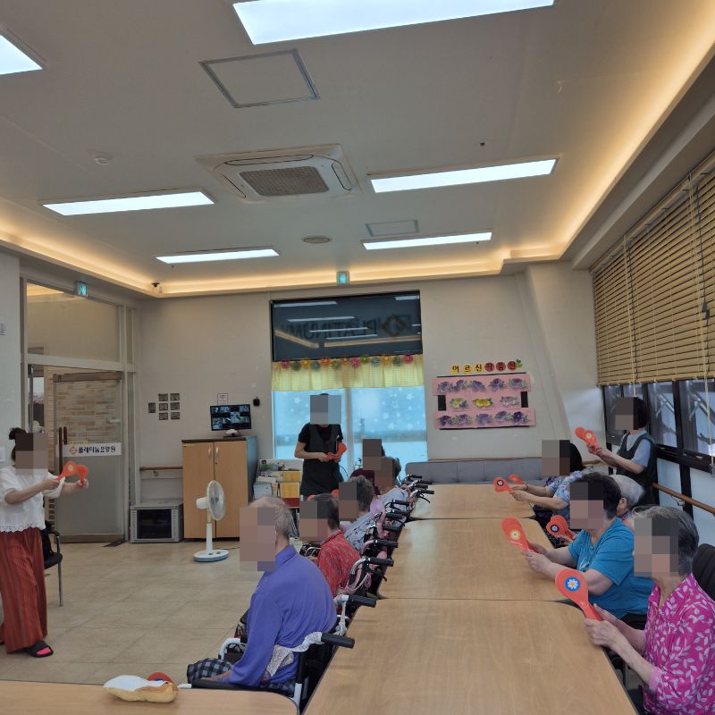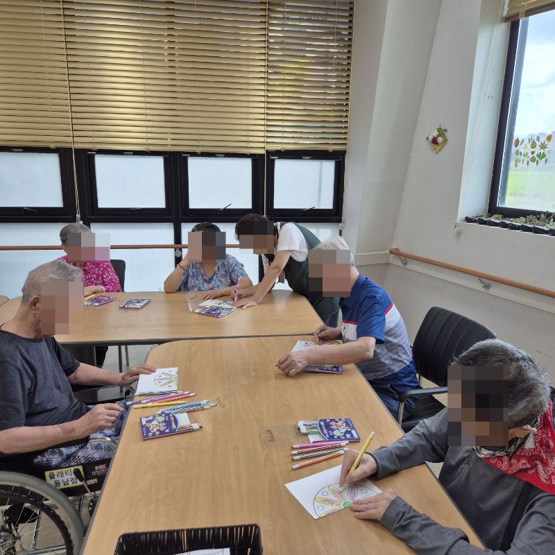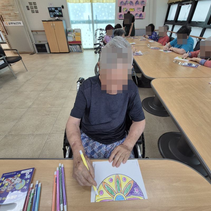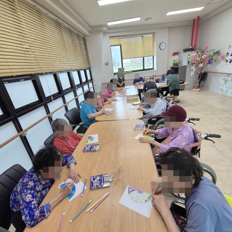 ⚬ 7월 2일 수요일_ 창의성의 날 ⚬ 관리자 2025-07-02 17:03 오전프로그램 : 외부강사- 레크레이션 (여가)목표: 레크레이션을 통해 어르신들의 신체활동을 향상한다.기대효과: 몸을 움직이며 대∙소근육과 신진대사에 도움을 준다.오후프로그램 : 만다라 색칠(인지)목표: 미술재료와 도구를 활용하여 자신의 생각과 느낌을 자유롭게 표현함으로써 정서적 안정감을 느낀다.기대효과: 예술 작품 표현과정에서 스트레스와 우울증 완화, 치매 어르신들이 미술 활동을 통하여 감정을 자유롭게 표현하며 나아가 자신의 존재성과 자긍심 회복에 기여 한다. 다음글 ⚬ 7월 4일 금요일_ 여가지원의 날 ⚬ 이전글 ⚬ 7월 1일 화요일_ 호기심의 날 ⚬ 목록