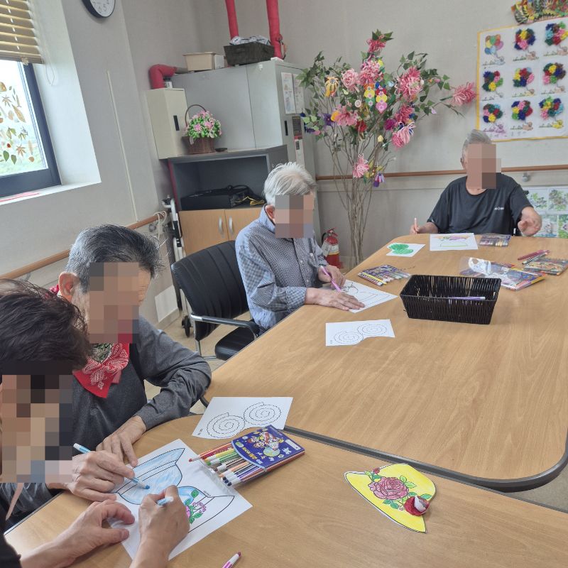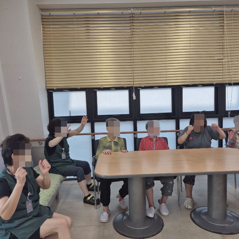 ⚬ 7월 7일 월요일_ 자기존중의 날 ⚬ 관리자 2025-07-07 17:11 오전프로그램 : 외부강사 – (인지)목표: 인지향상에 도움을 주고받으며 원하는 작품을 완성할때 성취감을 준다.기대효과: 소근육발달과 작품의 완성함을 보며 성취감을 느끼며 만족감을 형성한다.오후프로그램 : 국민 체조(신체)목표: 전신 근육의 균형 있는 사용으로 신체 건강 유지, 유연성 및 근력을 강화하여 일상생활 동작 수행 능력 향상, 심폐 기능 개선과 혈액순환 촉진, 규칙적인 운동 습관 형성 및 정서적 안정을 도모한다.기대효과: 관절 가동 범위와 균형감각이 개선되어 일상생활에서의 움직임이 원활해짐. 음악과 함께하는 국민체조는 재미와 동기부여를 제공하여 심리적 만족감을 높인다. 다음글 ⚬ 7월 8일 화요일_ 호기심의 날 ⚬ 이전글 ⚬ 7월 4일 금요일_ 여가지원의 날 ⚬ 목록