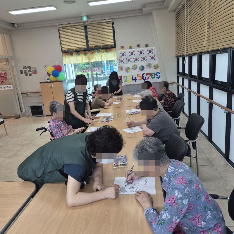 ⚬ 8월 13일 수요일_ 창의성의 날 ⚬ 관리자 2025-08-13 17:11 오전프로그램 : 외부강사- 레크레이션 (여가)목표: 레크레이션을 통해 어르신들의 신체활동을 향상한다 .기대효과: 몸을 움직이며 대∙소근육과 신진대사에 도움을 준다.오후프로그램 : 숫자 잇기(인지)목표: 숫자를 기억하며 선긋기를 통해 집중력을 향상시킨다. 손 운동으로 소근육기능 유지를 향상시킨다. 점선을 이어 그림을 완성함으로 성취감을 느낄 수 있다.기대효과: 숫자 기억과 집중력을 향상한다. 성취감 형성한다. 다음글 ⚬ 8월 15일 금요일_ 여가지원의 날 ⚬ 이전글 ⚬ 8월 12일 화요일_ 호기심의 날 ⚬ 목록