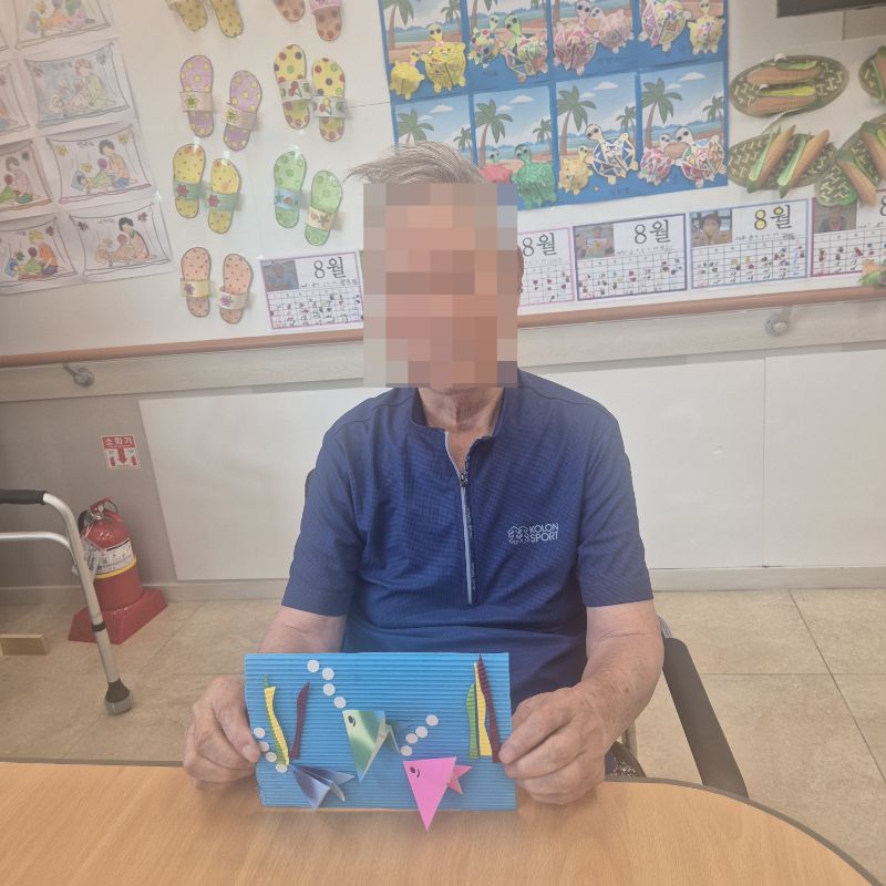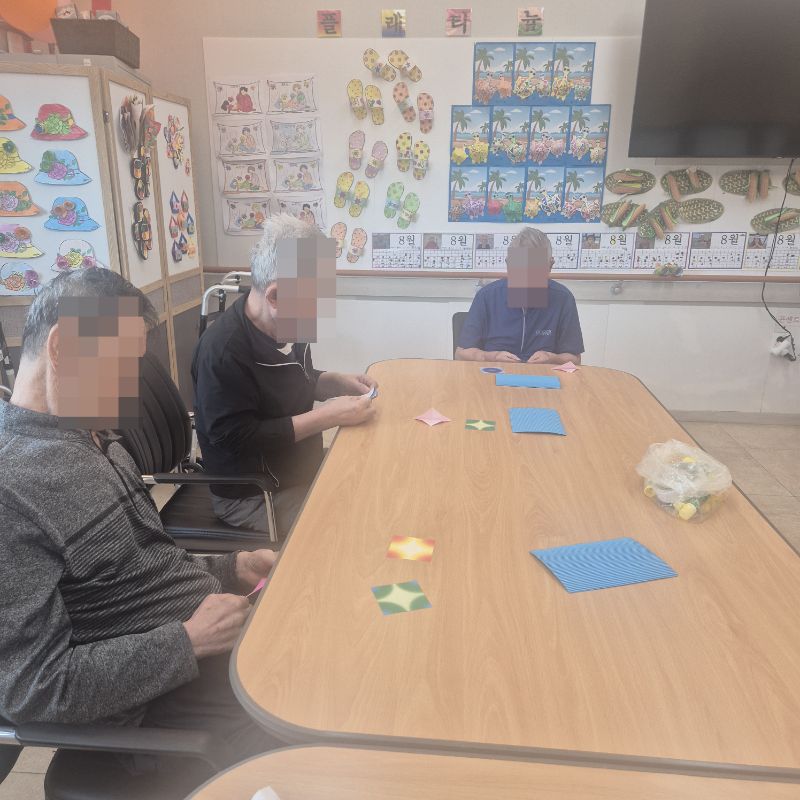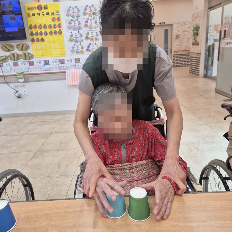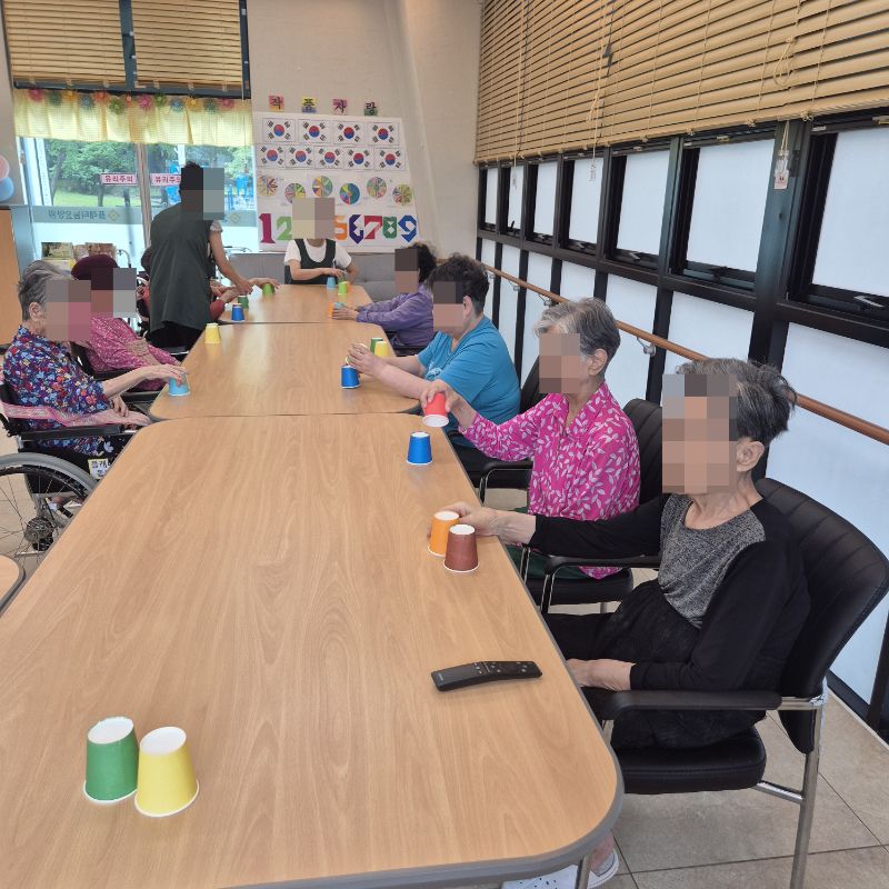 ⚬ 8월 19일 화요일_ 호기심의 날 ⚬ 관리자 2025-08-19 17:28 오전프로그램 : 음악 듣고 컵 옮기기(여가)목표: 소근육 운동, 집중력 강화 및 손과 눈의 협응력과 조작능력을 향상시킬 수 있다.인지 기능 및 잔존기능 향상과 유지를 할 수 있다.기대효과: 리듬감,조절능력, 집중력, 인지력, 협응력, 기억력, 성취감, 공간 지각 능력 향상한다.오후프로그램 : 외부강사 – (인지)목표: 인지향상에 도움을 주고며 원하는 작품을 완성할때 성취감을 준다. 재료의 내용과 사용방법의 변화 알아본다.기대효과: 새로운 소재의 재료로 창의력을 증진한고 완성된 작품을 보며 성취감을 느껴 만족감 형성 한다. 다음글 ⚬ 8월 20일 수요일_ 창의성의 날 ⚬ 이전글 ⚬ 8월 15일 금요일_ 여가지원의 날 ⚬ 목록
