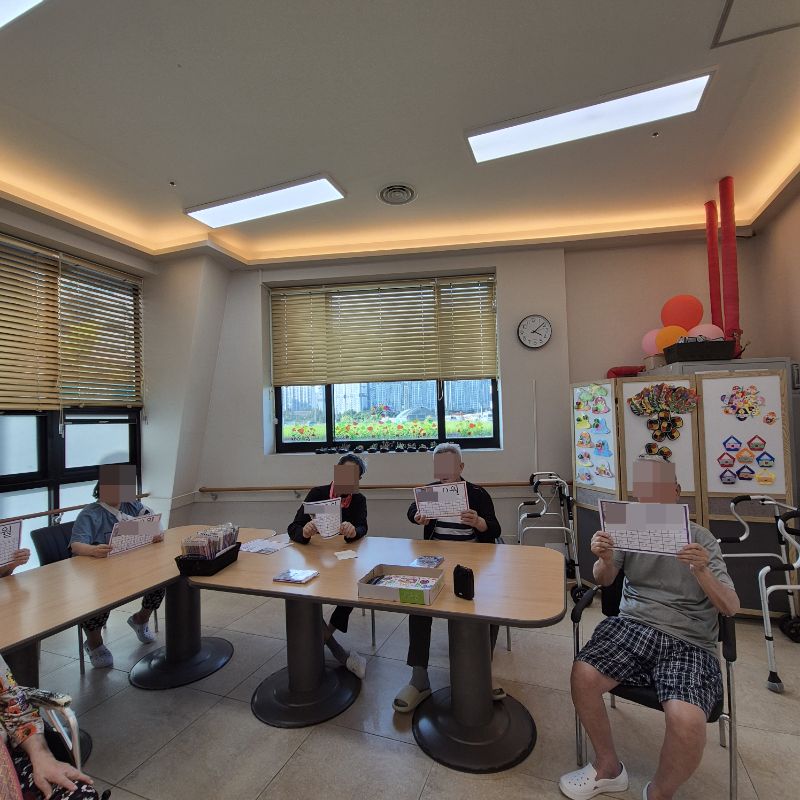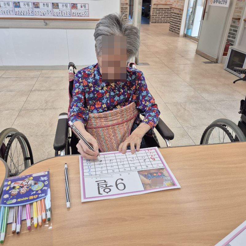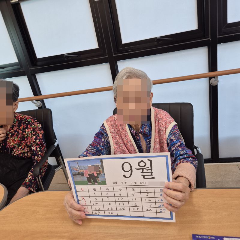 ⚬ 8월 27일 수요일_ 창의성의 날 ⚬ 관리자 2025-08-27 17:29 오전프로그램 : 외부강사- 레크레이션 (여가)목표: 레크레이션을 통해 어르신들의 신체활동을 향상한다 .기대효과: 몸을 움직이며 대∙소근육과 신진대사에 도움을 준다.오후프로그램 : 새로운 달 알아보기(인지)목표: 숫자를 알고 기억해 순서대로 써보고 계절의 변화를 알 수 있다. 스티커를 붙이며 소근육을 증진한다.기대효과: 숫자를 기억하여 인지 기능 향상한다. 계절지남력 향상한다. 다음글 ⚬ 9월 1일 월요일_ 자기존중의 날 ⚬ 이전글 ⚬ 8월 25일 월요일_ 자기존중의 날 ⚬ 목록