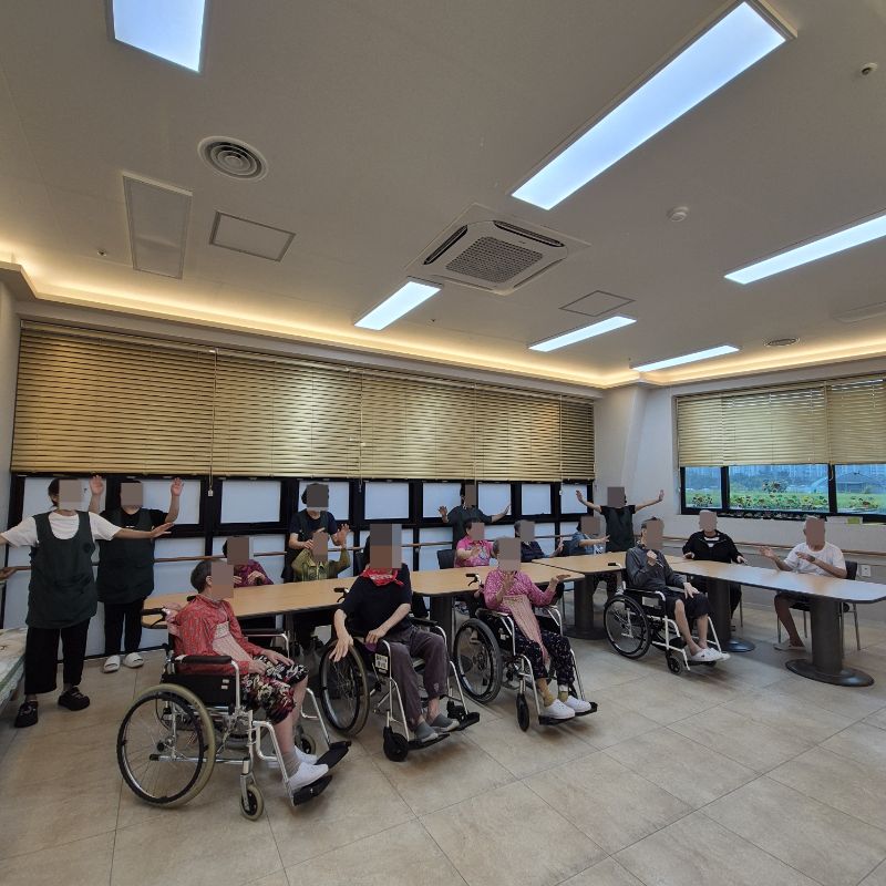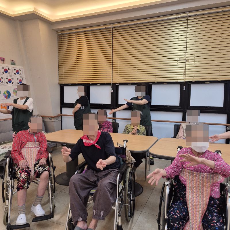 ⚬ 9월 1일 월요일_ 자기존중의 날 ⚬ 관리자 2025-09-01 17:40 오전프로그램 : 외부강사 – (인지)목표: 인지향상에 도움을 주고받으며 원하는 작품을 완성할때 성취감을 준다.기대효과: 소근육발달과 작품의 완성함을 보며 성취감을 느끼며 만족감을 형성한다.오후프로그램 : 국민 체조(신체)목표: 전신 근육의 균형 있는 사용으로 신체 건강 유지, 유연성 및 근력을 강화하여 일상생활 동작 수행 능력 향상, 심폐 기능 개선과 혈액순환 촉진, 규칙적인 운동 습관 형성 및 정서적 안정을 도모한다.기대효과: 관절 가동 범위와 균형감각이 개선되어 일상생활에서의 움직임이 원활해짐. 음악과 함께하는 국민체조는 재미와 동기부여를 제공하여 심리적 만족감을 높인다. 다음글 ⚬ 9월 2일 화요일_ 호기심의 날 ⚬ 이전글 ⚬ 8월 27일 수요일_ 창의성의 날 ⚬ 목록