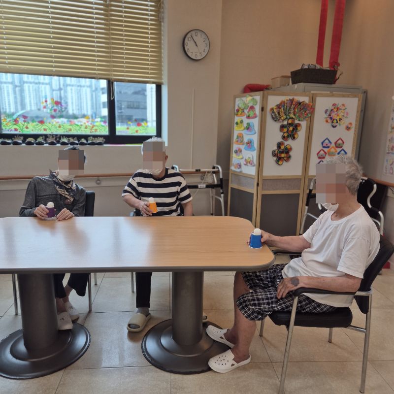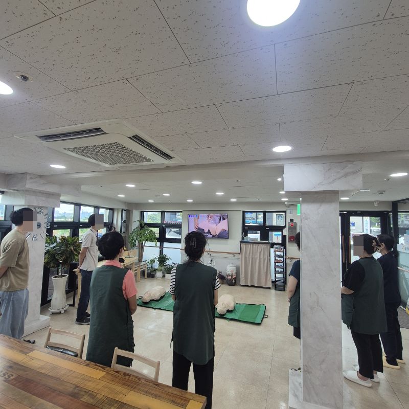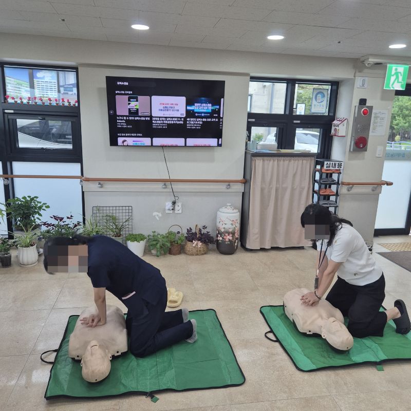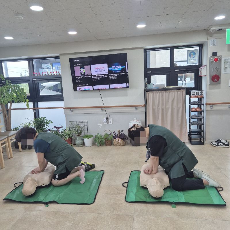 ⚬ 9월 2일 화요일_ 호기심의 날 ⚬ 관리자 2025-09-02 17:43 CPR교육 : 대상자의 어깨를 두드린 후 코에다 손을 갖다 대고 의식확인을 한다. 대상자가 의식이 없는 것을 확인후 119에 전화를요청하고 제세동기를 요청한다. 대상자의 심장위치에 대고 손을 깍지를 낀 후 의식을 확인하면서 심폐소생술을 진행한다. 119가 올 때까지 진행한다. 어르신들께서 안전한 요양원 생활을 하시게 준비하였습니다.오전프로그램 : 컵 공기놀이(여가)목표: 손으로 탁구공이 올려진 컵을 뒤집는 동작을 하며 대,소 근육을 발달 시킬 수 있다. 조준력과 신체 조절 능력을 기를 수 있다.기대효과: 조절능력, 집중력, 인지력, 협응력, 추리력, 기억력, 성취감, 공간 지각 능력 향상한다.오후프로그램 : 외부강사 – (인지)목표: 인지향상에 도움을 주고며 원하는 작품을 완성할때 성취감을 준다. 재료의 내용과 사용방법의 변화 알아 본다.기대효과: 새로운 소재의 재료로 창의력을 증진한고 완성된 작품을 보며 성취감을 느껴 만족감 형성 한다. 다음글 ⚬ 9월 3일 수요일_ 창의성의 날 ⚬ 이전글 ⚬ 9월 1일 월요일_ 자기존중의 날 ⚬ 목록