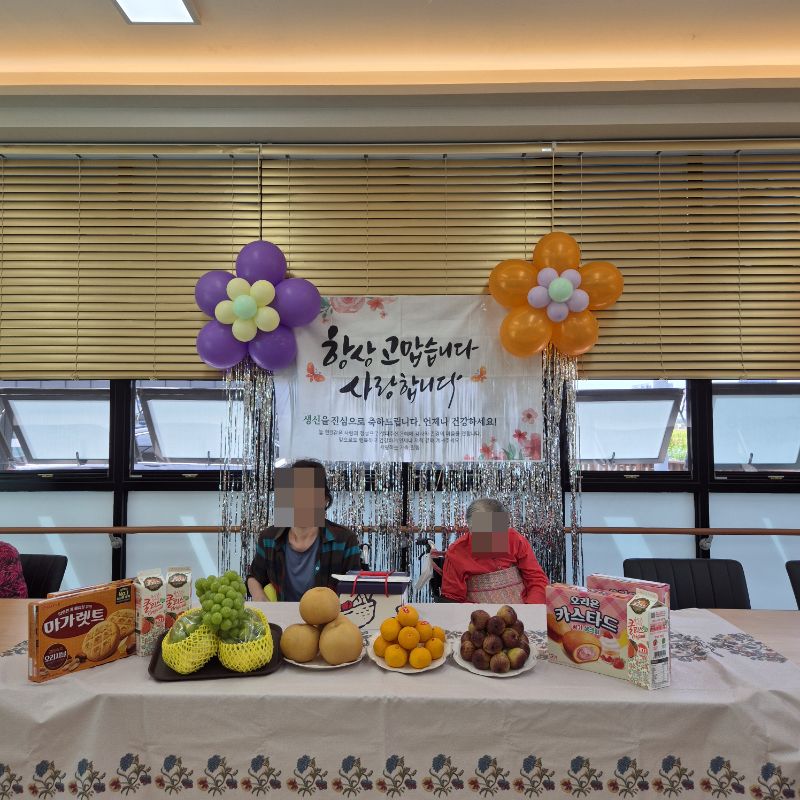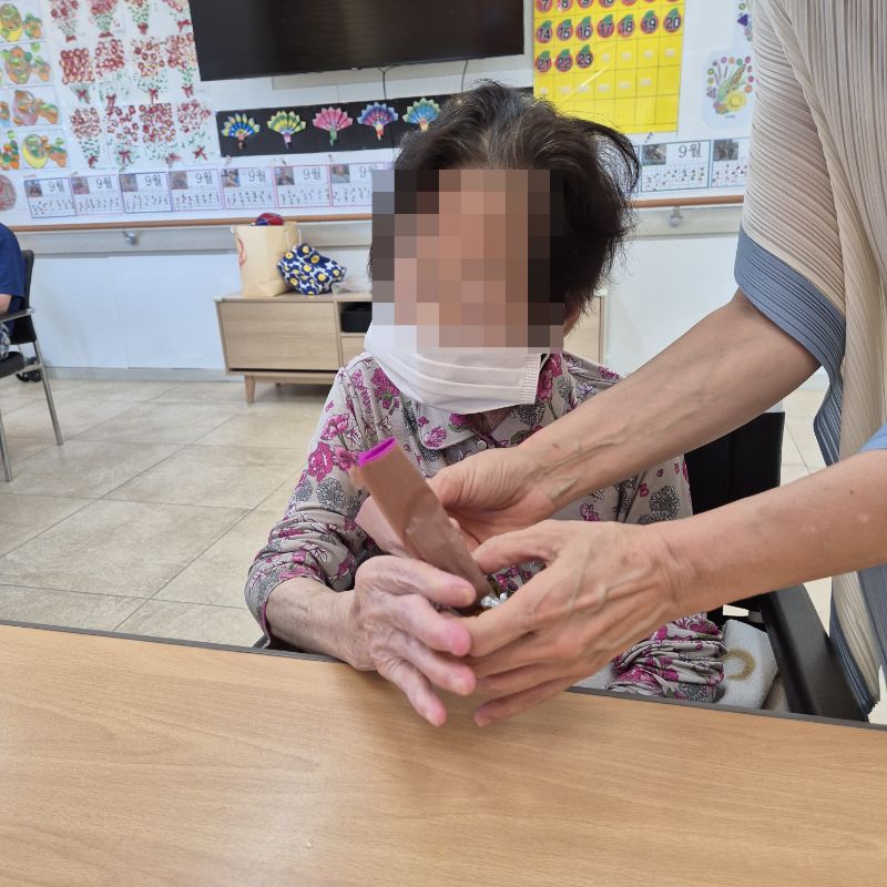 ⚬ 9월 23일 화요일_ 호기심의 날 ⚬ 관리자 2025-09-23 17:45 오전프로그램 : 고리 던지기(여가)목표: 소근육 증진과 사회성 발달및 신체 조절능력을 기를수 있다. 신체를 움직이며 기분전환을 할수 있다. 타인과 사회성을 증진할수 있다.기대효과: 소근육 증진, 사회성 발달, 신체 조절능력 향상, 기분전환 효과를 기대한다.오후프로그램 : 외부강사 – (인지)목표: 인지향상에 도움을 주고며 원하는 작품을 완성할때 성취감을 준다. 재료의 내용과 사용방법의 변화 알아본다.기대효과: 새로운 소재의 재료로 창의력을 증진한고 완성된 작품을 보며 성취감을 느껴 만족감 형성 한다.생신잔치 : 박0순어르신,구0교어르신생신잔치를 열어 어르신들께 건강하게 오래오래 사시자고 축하 인사를 드리고 축가를 불러드렸습니다.보내주신 간식을 나눠 드시고 다 못드신 간식은 두구두고 나눠 드시자고 약속하셨습니다.매일매일이 잔칫날인 오늘만 같았으면 좋겠습니다. 생신축하드립니다.~ 건강하세요.~~ 다음글 ⚬ 9월 24일 수요일_ 창의성의 날 ⚬ 이전글 ⚬ 9월 19일 금요일_ 여가지원의 날 ⚬ 목록