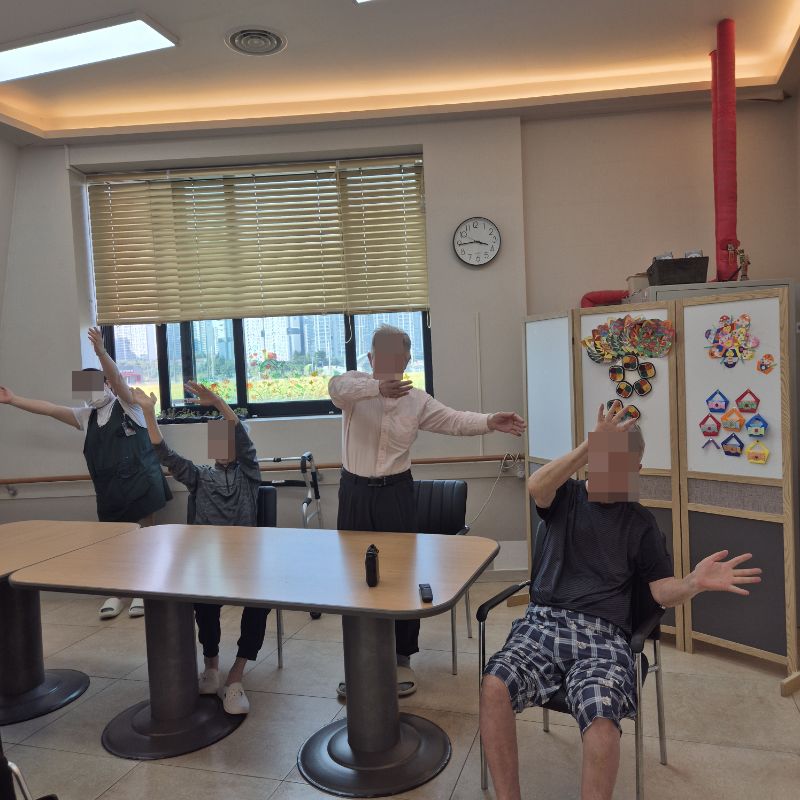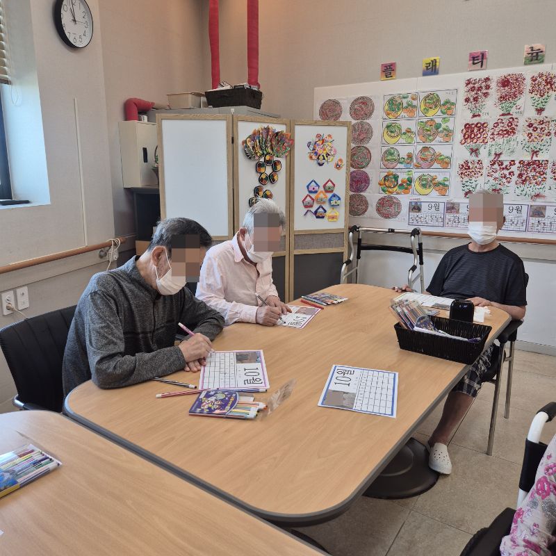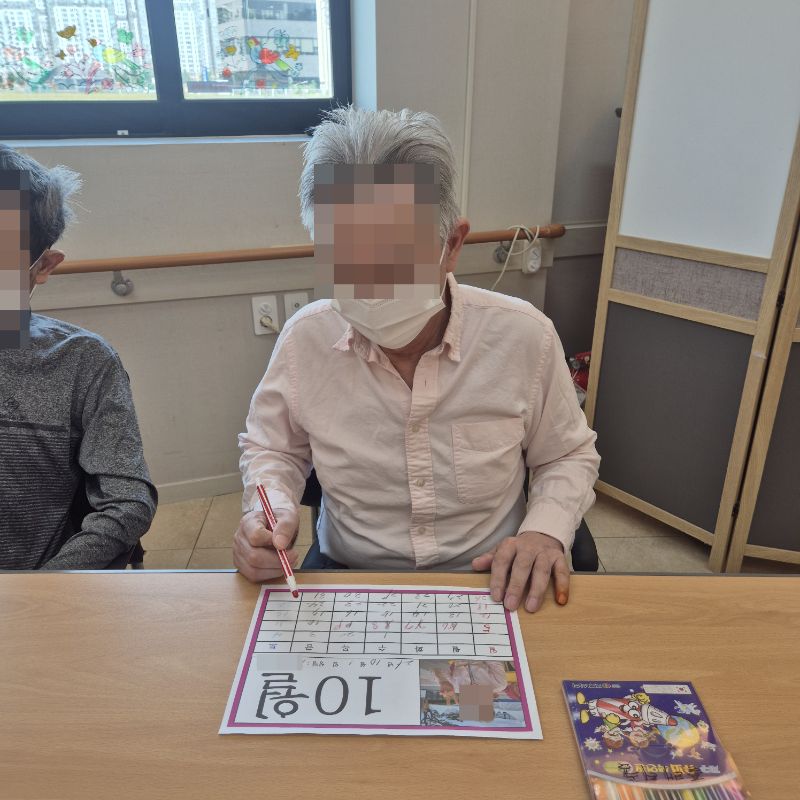 ⚬ 9월 29일 월요일_ 자기존중의 날 ⚬ 관리자 2025-09-29 17:15 오전프로그램 : 새로운달 알아보기(인지)목표: 숫자를 알고 기억해 순서대로 써보고 계절의 변화를 알 수 있다. 스티커를 붙이며 소근육을 증진한다.기대효과: 숫자를 기억하여 인지 기능 향상한다. 계절지남력 향상한다.오후프로그램 : 균형운동(신체)목표: 신체 균형 능력 향상 및 낙상 예방. 하지 근력 강화로 안정된 보행 능력 유지. 균형 잡는 감각 개선으로 일상생활 수행 능력 증진. 자신감 및 신체적 활력 회복한다.기대효과: 낙상 예방 능력 강화로 안전한 보행 유지. 하지 근육 및 관절 강화로 신체 기능 향상. 균형 감각과 반사 신경 개선. 자신감 상승 및 활동성 증대. 신체 활동을 통한 심리적 안정 및 삶의 질 향상한다. 다음글 ⚬ 9월 30일 화요일_ 호기심의 날 ⚬ 이전글 ⚬ 9월 26일 금요일_ 여가지원의 날 ⚬ 목록