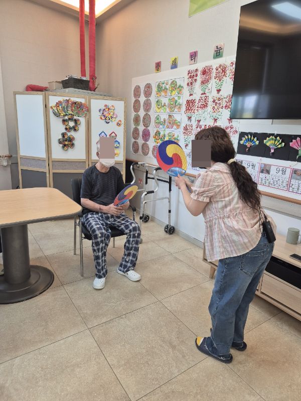 ⚬ 10월 1일 수요일_ 창의성의 날 ⚬ 관리자 2025-10-01 17:36 오전프로그램 : 외부강사- 레크레이션 (여가)목표: 레크레이션을 통해 어르신들의 신체활동을 향상 한다 .기대효과: 몸을 움직이며 대∙소근육과 신진대사에 도움을 준다.오후프로그램 : 도안을 이용한 꾸미기(인지)목표: 순서를 기억함으로써 기억력향상에 도움이 되고, 종이 접는 힘을 이용하여 소근육을 발달시킨다. 집중력을 강화할수있다.기대효과: 함께 모여서 활동하면서 어르신들의 친밀감 형성 및 대인관계 능력을 향상시킨다. 다음글 ⚬ 10월 3일 금요일_ 여가지원의 날 ⚬ 이전글 ⚬ 9월 30일 화요일_ 호기심의 날 ⚬ 목록